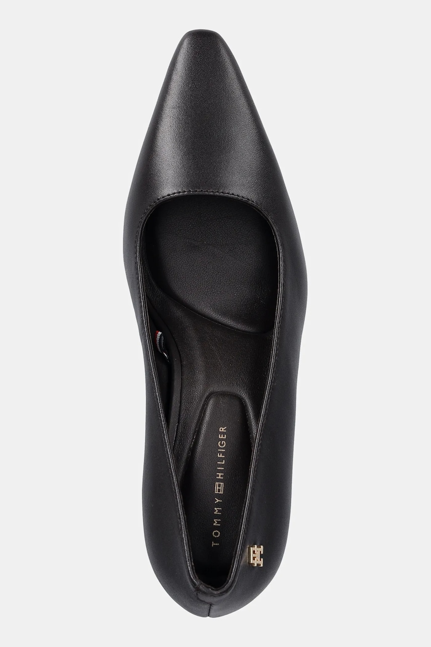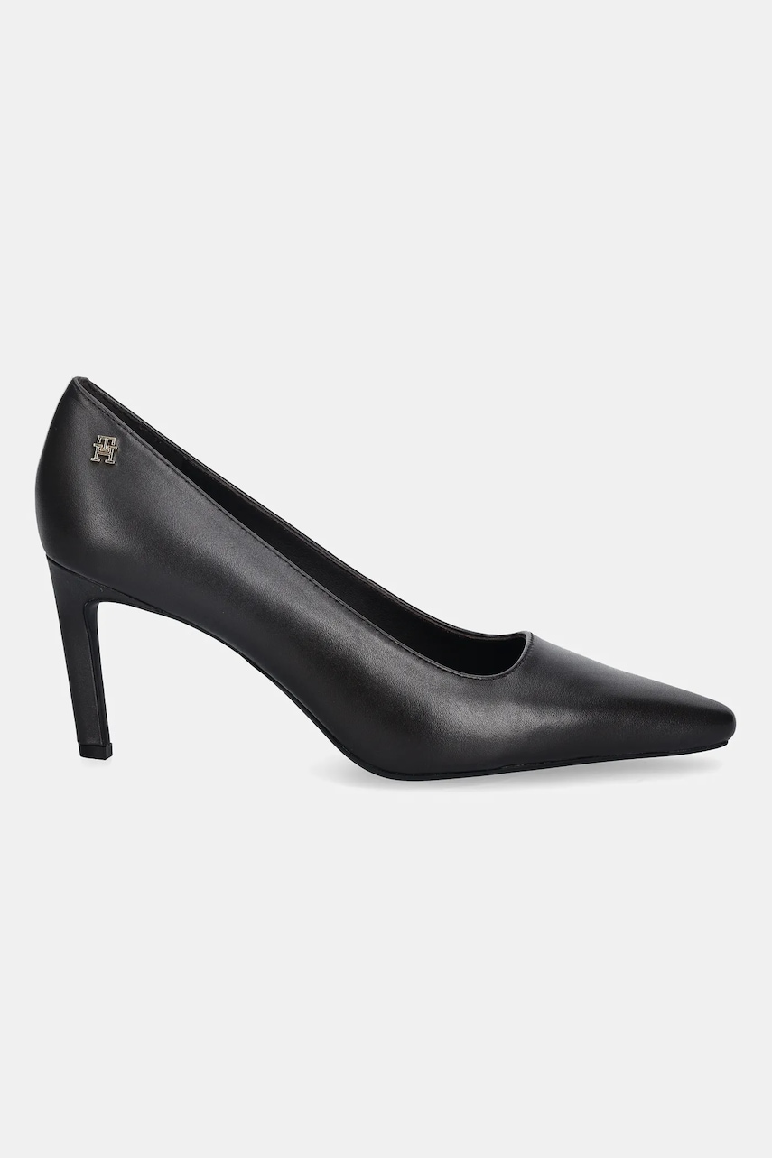 Tommy Hilfiger szpilki skórzane TH LOGO LTH PUMP SLANTED HL kolor brązowy FW0FW09008