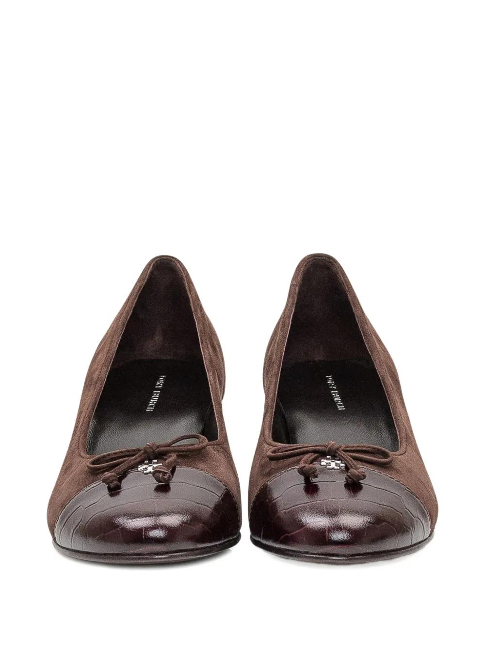 chocolate brown logo plaque branded leather insole mid block heel square toe