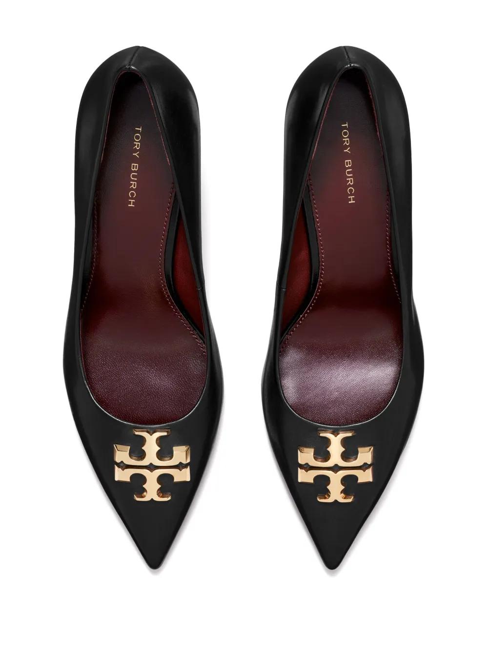 black leather signature Double T motif pointed toe branded insole slip-on style high heel
