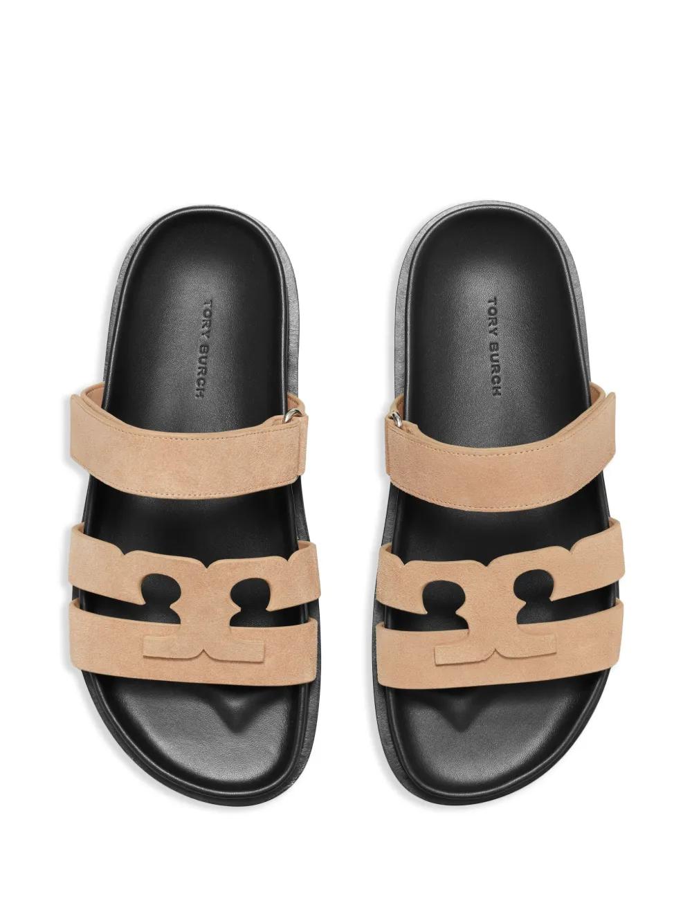 brown slip-on style touch-strap fastening branded leather insole round open toe