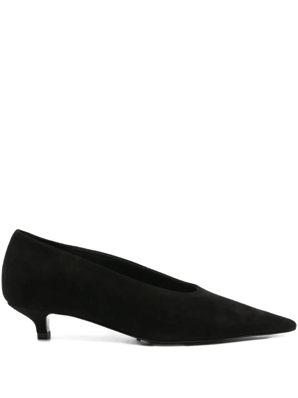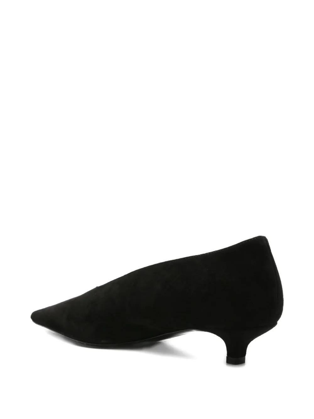 black calf leather patent finish asymmetric design pointed toe 105mm pyramidal wedge heel branded leather insole slip-on style