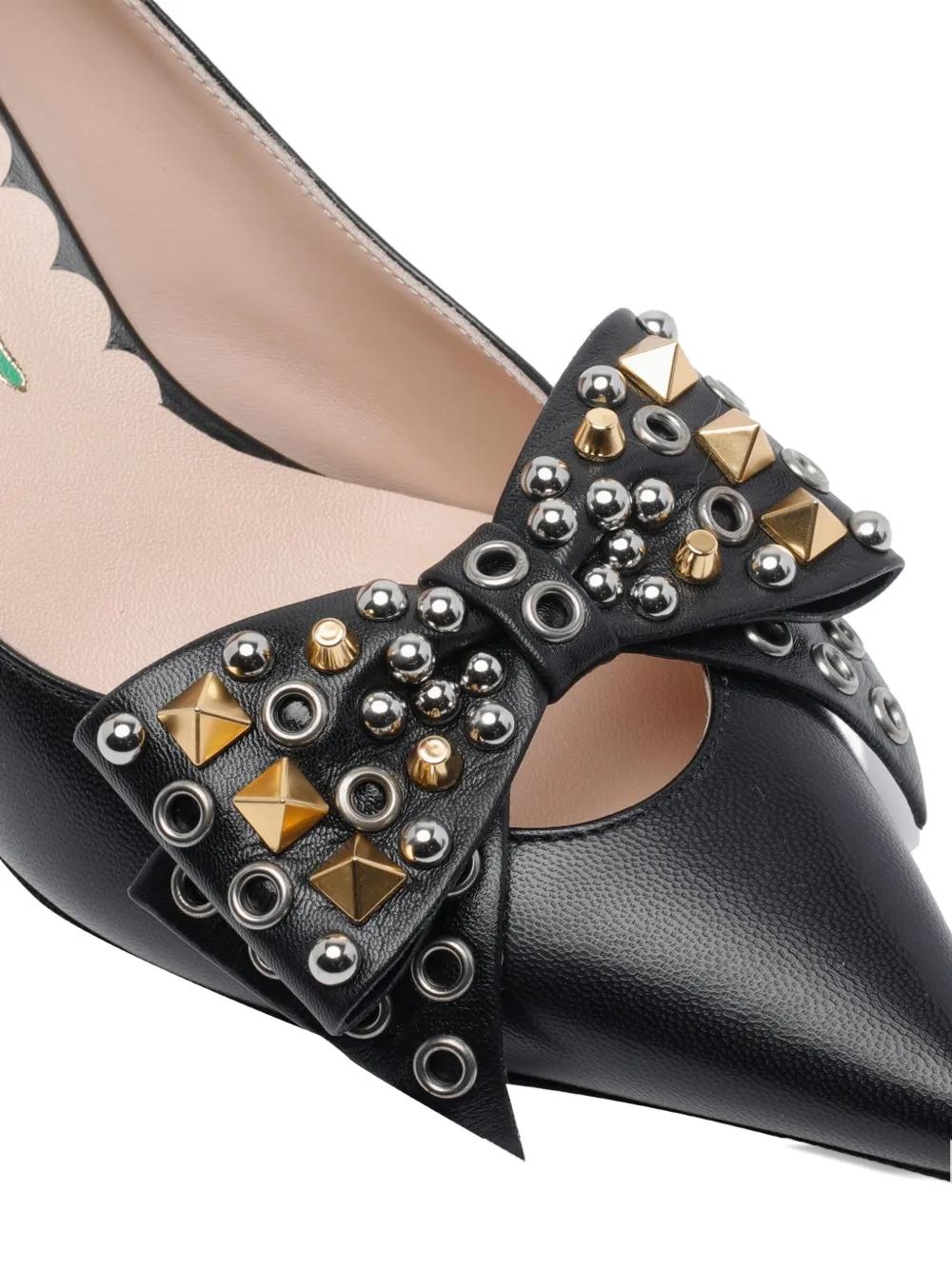 black studded bow pointed toe leather upper stiletto heel
