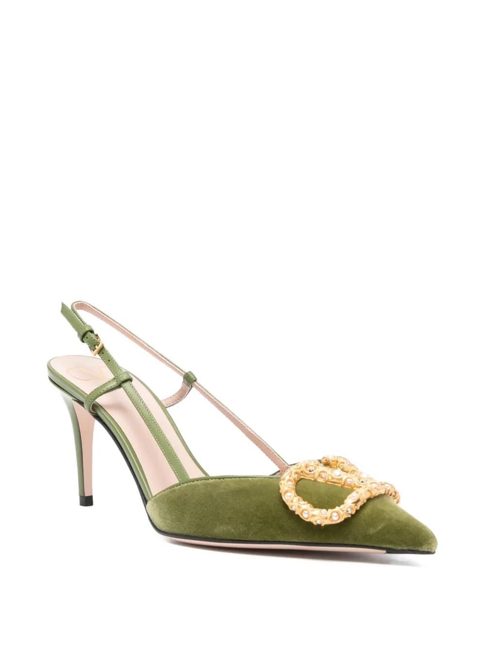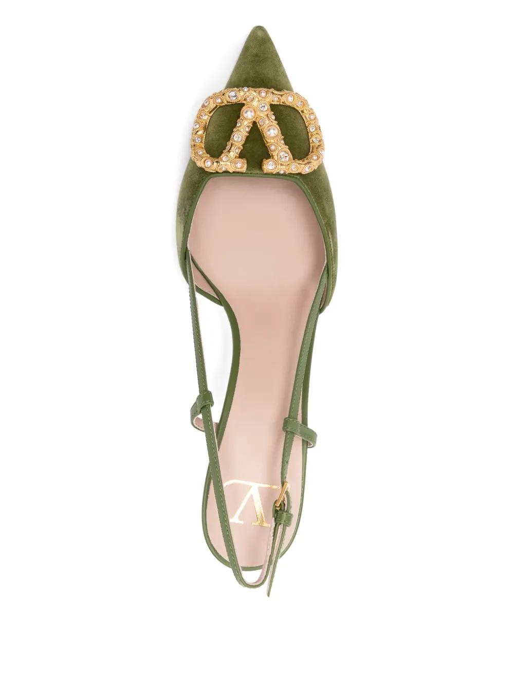 green VLogo Signature suede crystal-embellishment slingback strap pointed toe stiletto heel