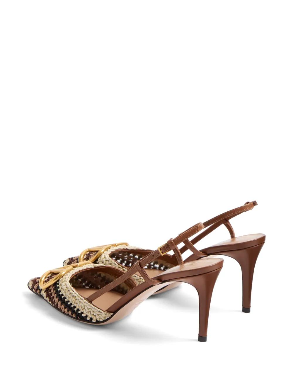 brown/beige high heel buckle-fastening ankle strap VLogo Signature pointed toe