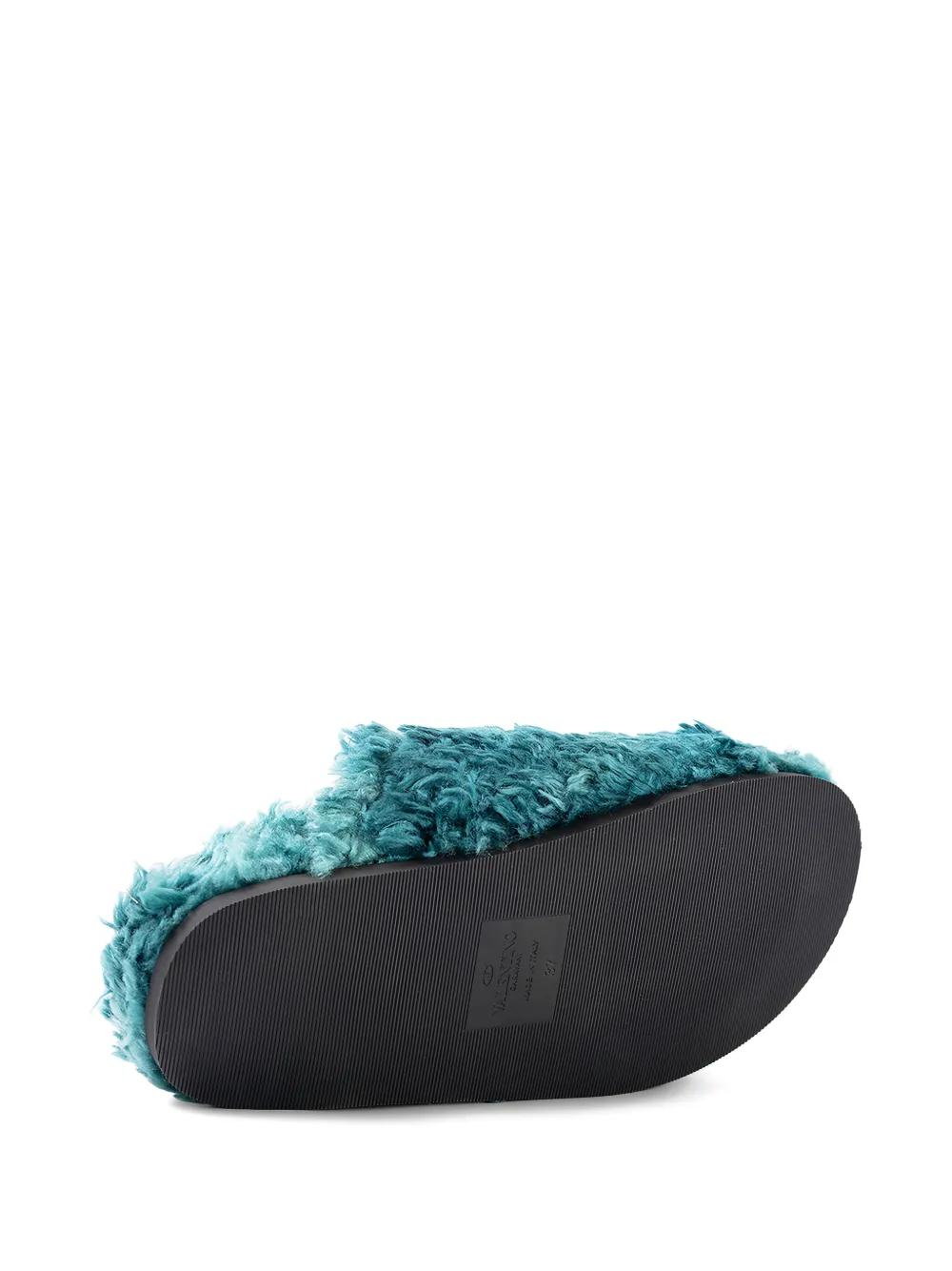 blue pyramidal studs open toe flat sole slip-on style textured finish