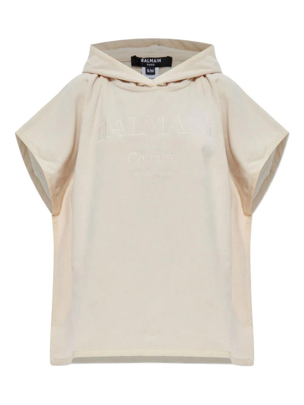 Balmain hooded logo poncho - Neutrals
