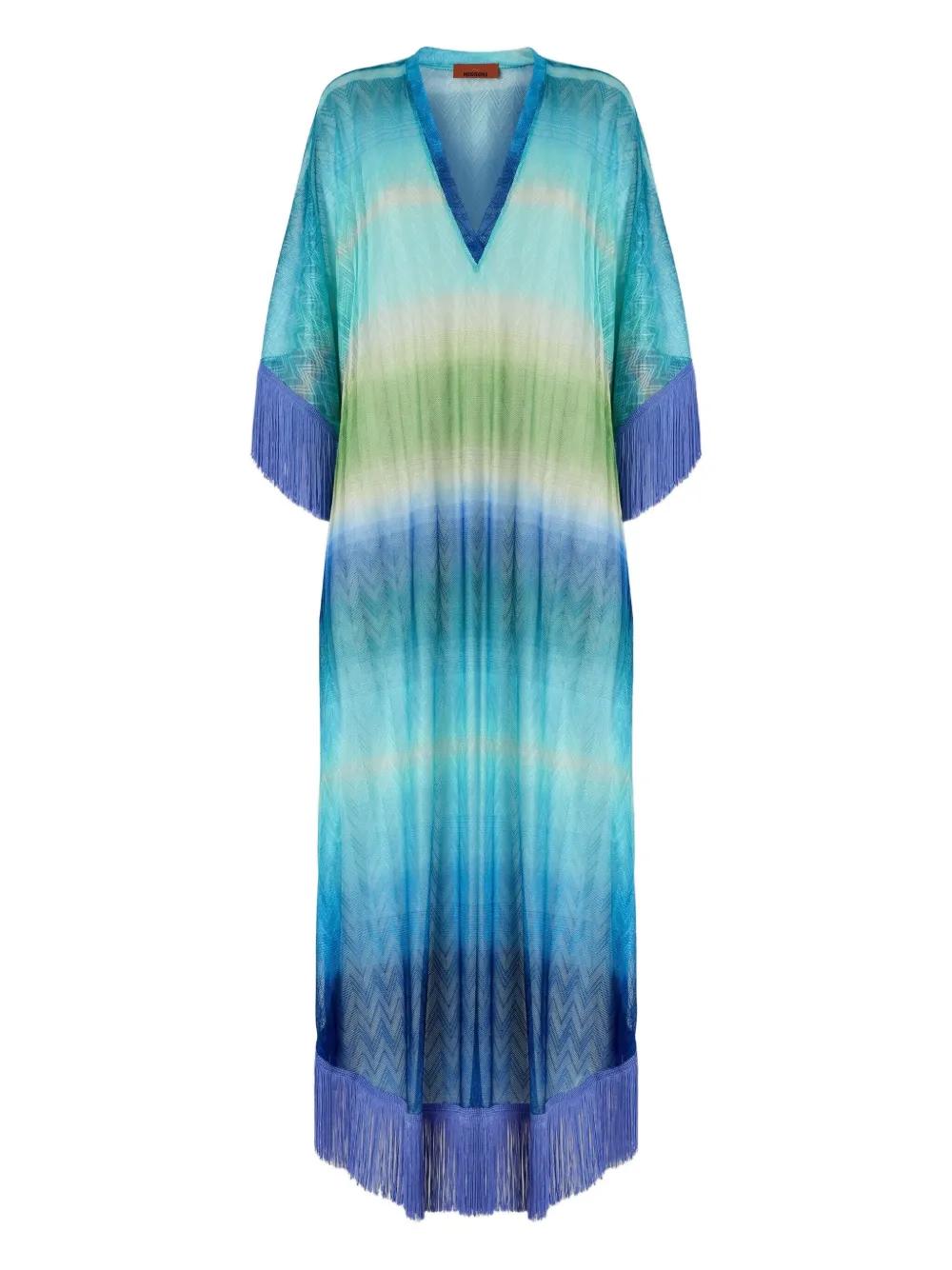 blue v-neck fringed trim ombre effect The item you receive may differ slightly from the item photographed. This is due to the artisanal nature with which all Missoni products are constructed.