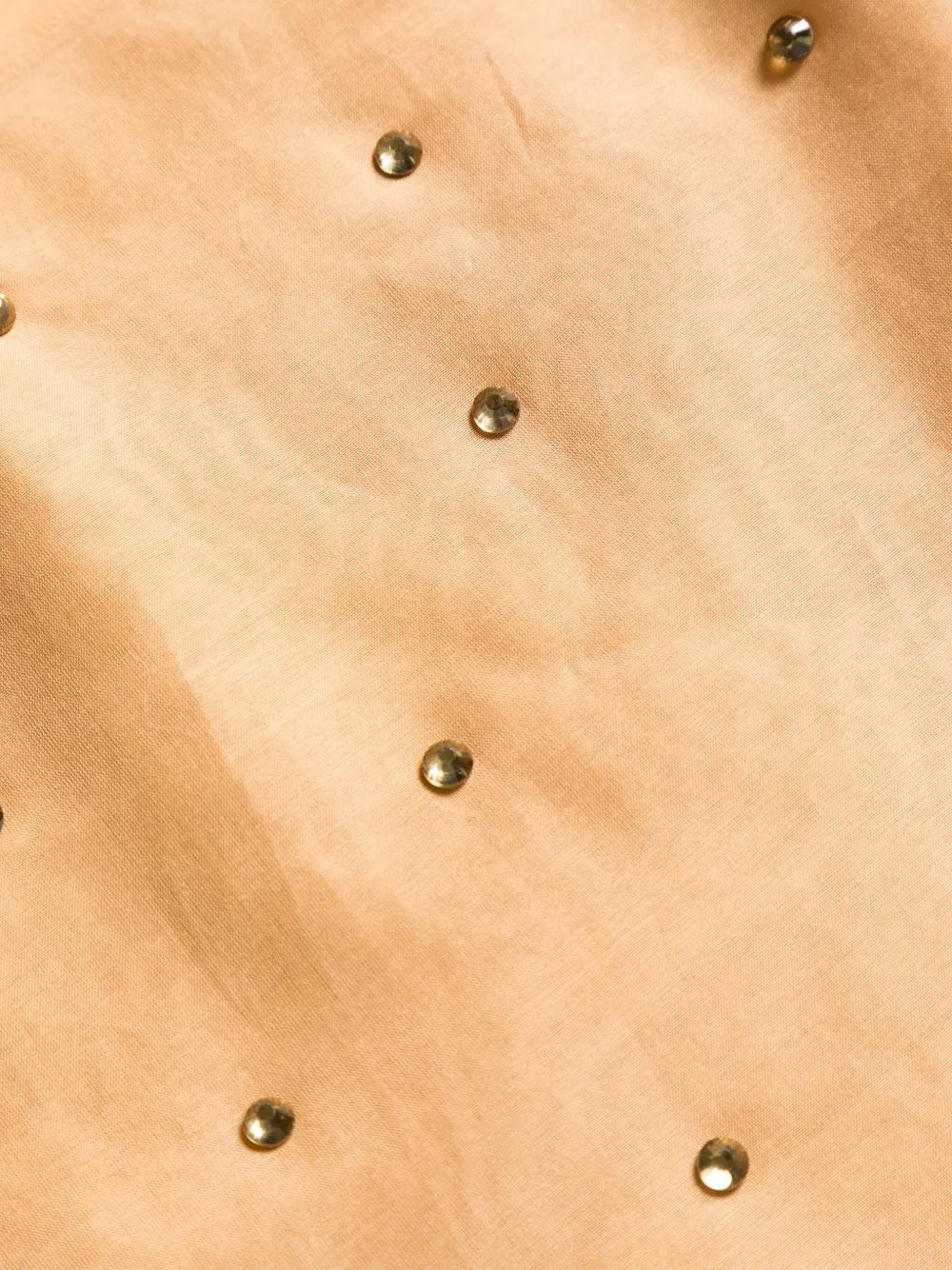 sand beige cotton-silk blend crystal embellishment front tie fastening high-low hem