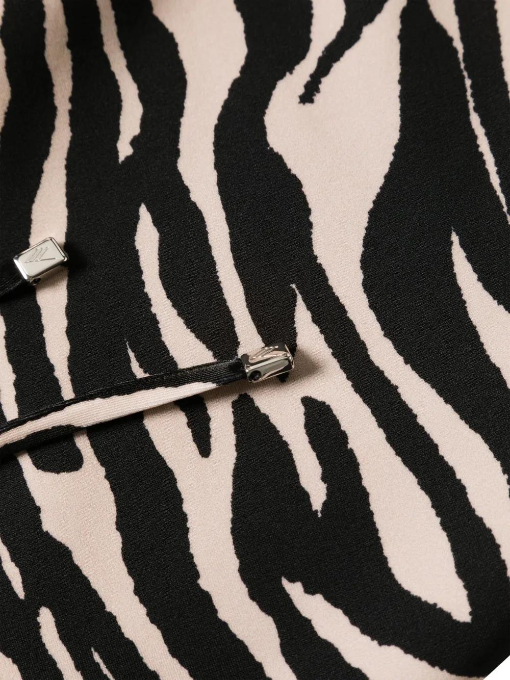 black/cappuccino beige stretch-design technical jersey all-over zebra print open side thigh-length sash detail full-length side tie fastening