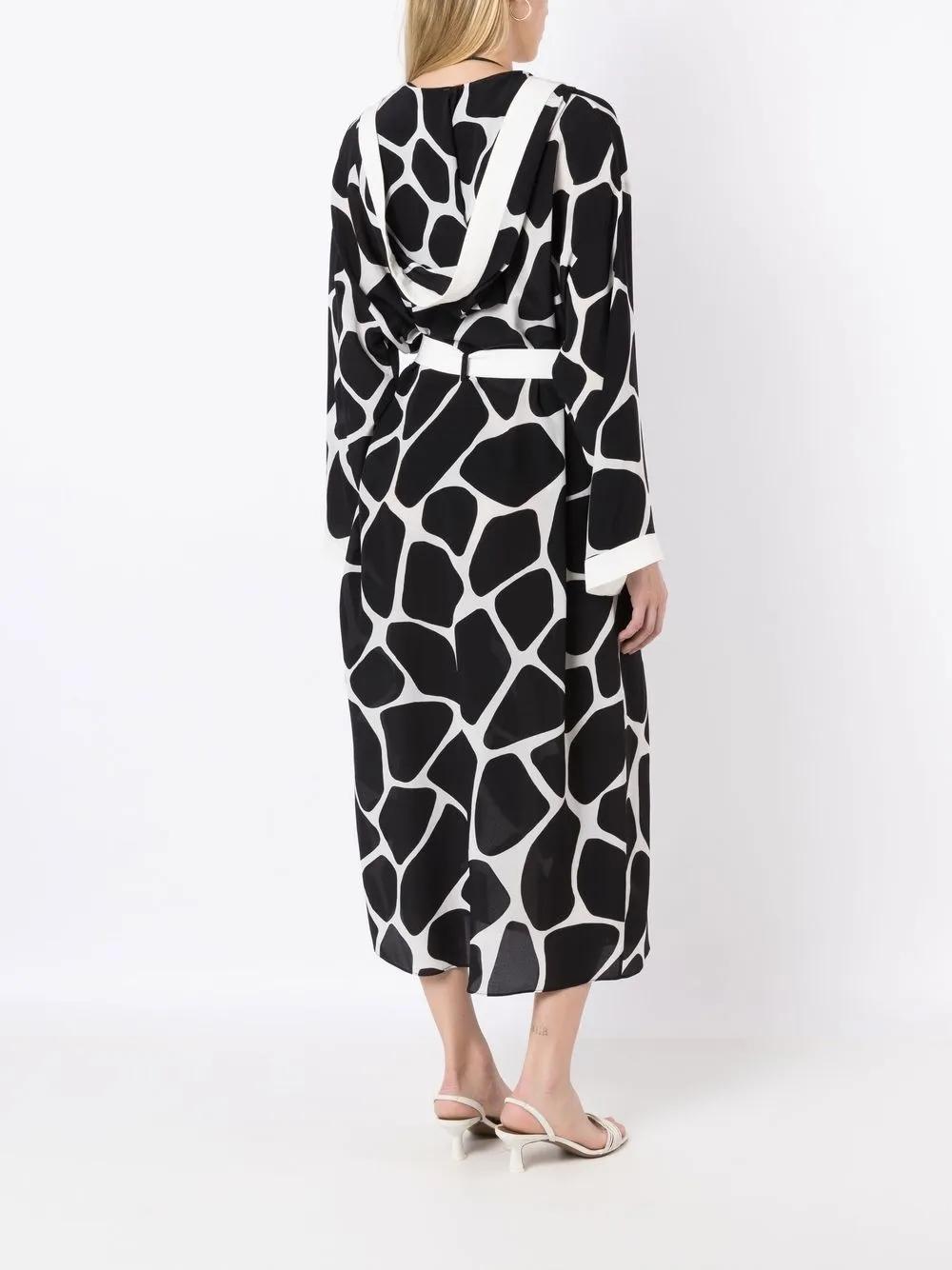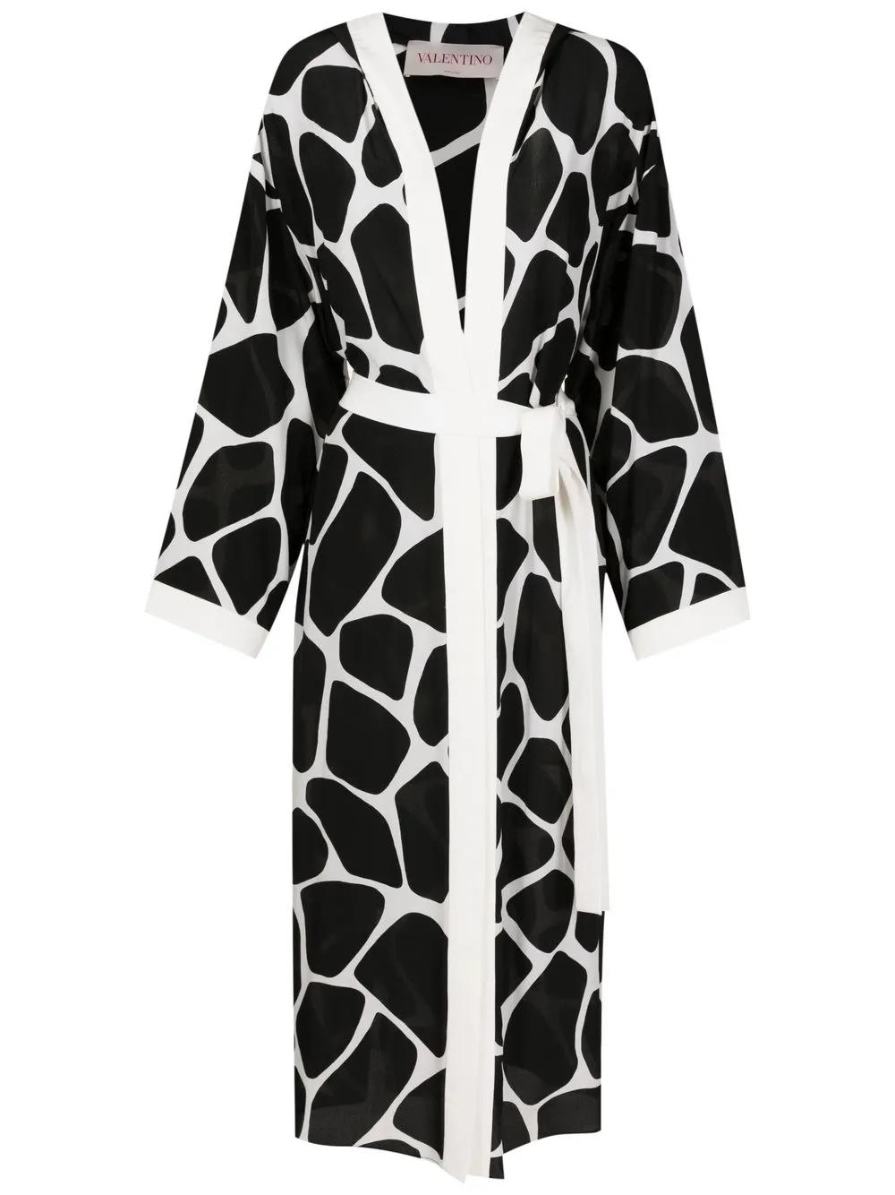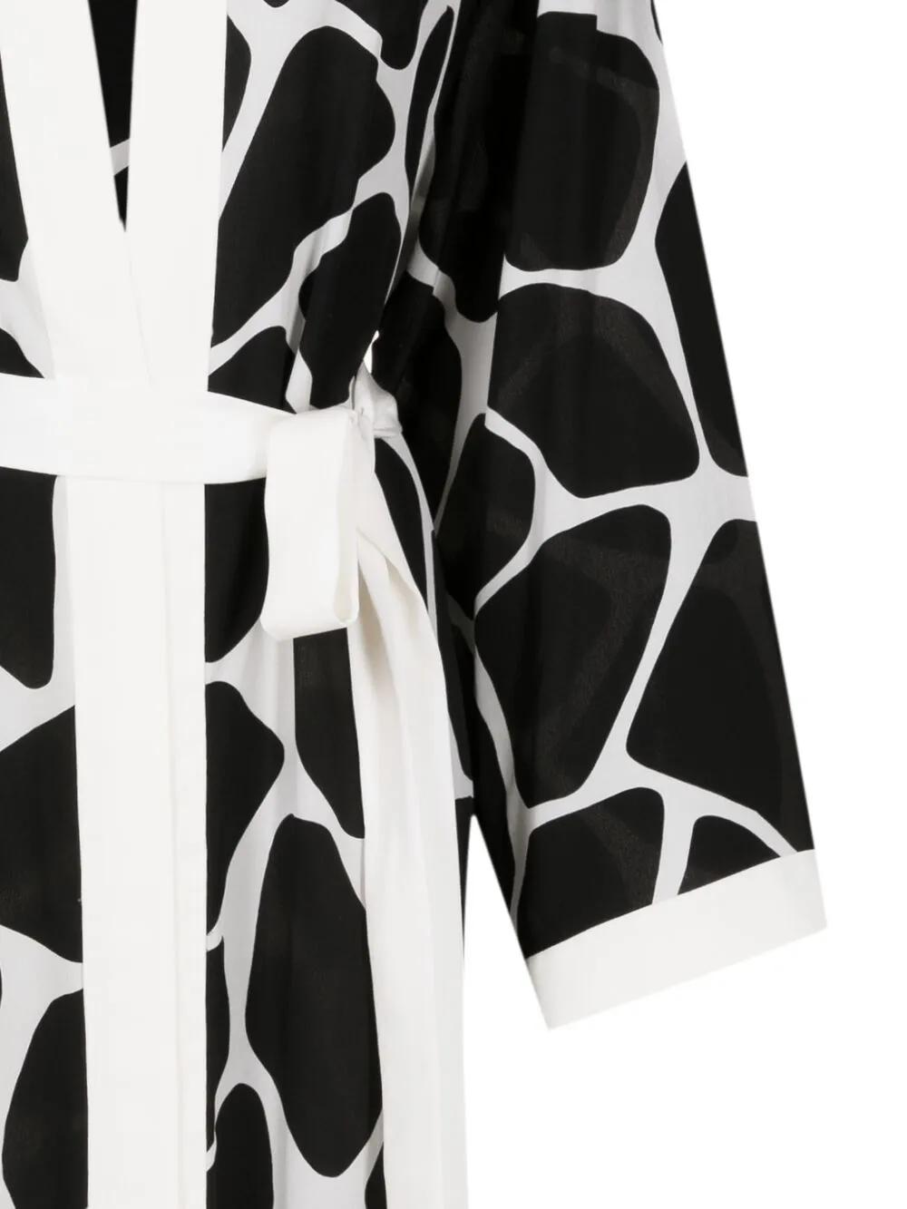Valentino Ready To Wear black/white silk animal print tied waist wrap design long sleeves straight hem mid-length