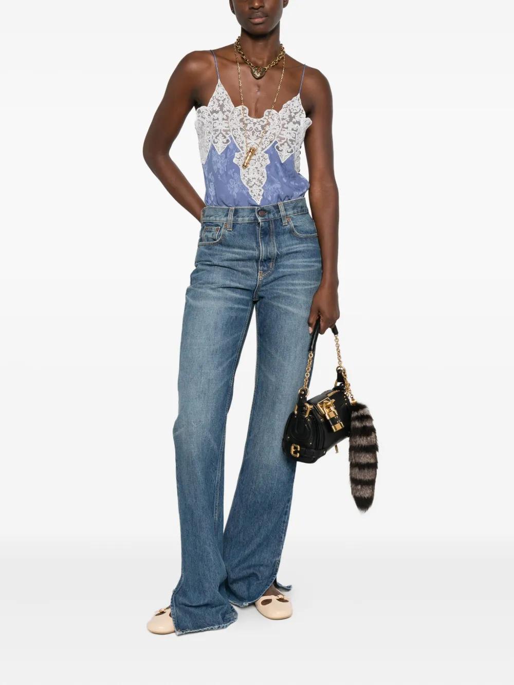 Fluid camisole top in matte and shiny organic silk with a floral jacquard pattern.ScoopneckSide button fasteningCamisole strapsLace inserts100% Silk. Dry clean