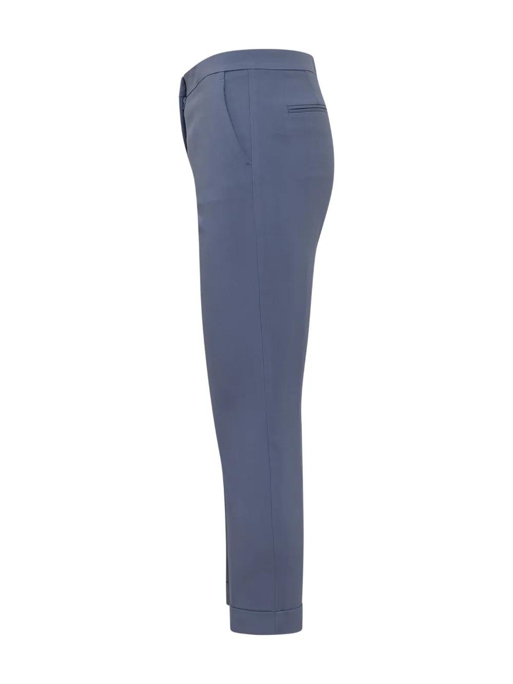 black virgin wool slim cut mid-rise belt loops buckle-strap fastening concealed front fastening two side inset pockets two rear welt pockets ankle zips
