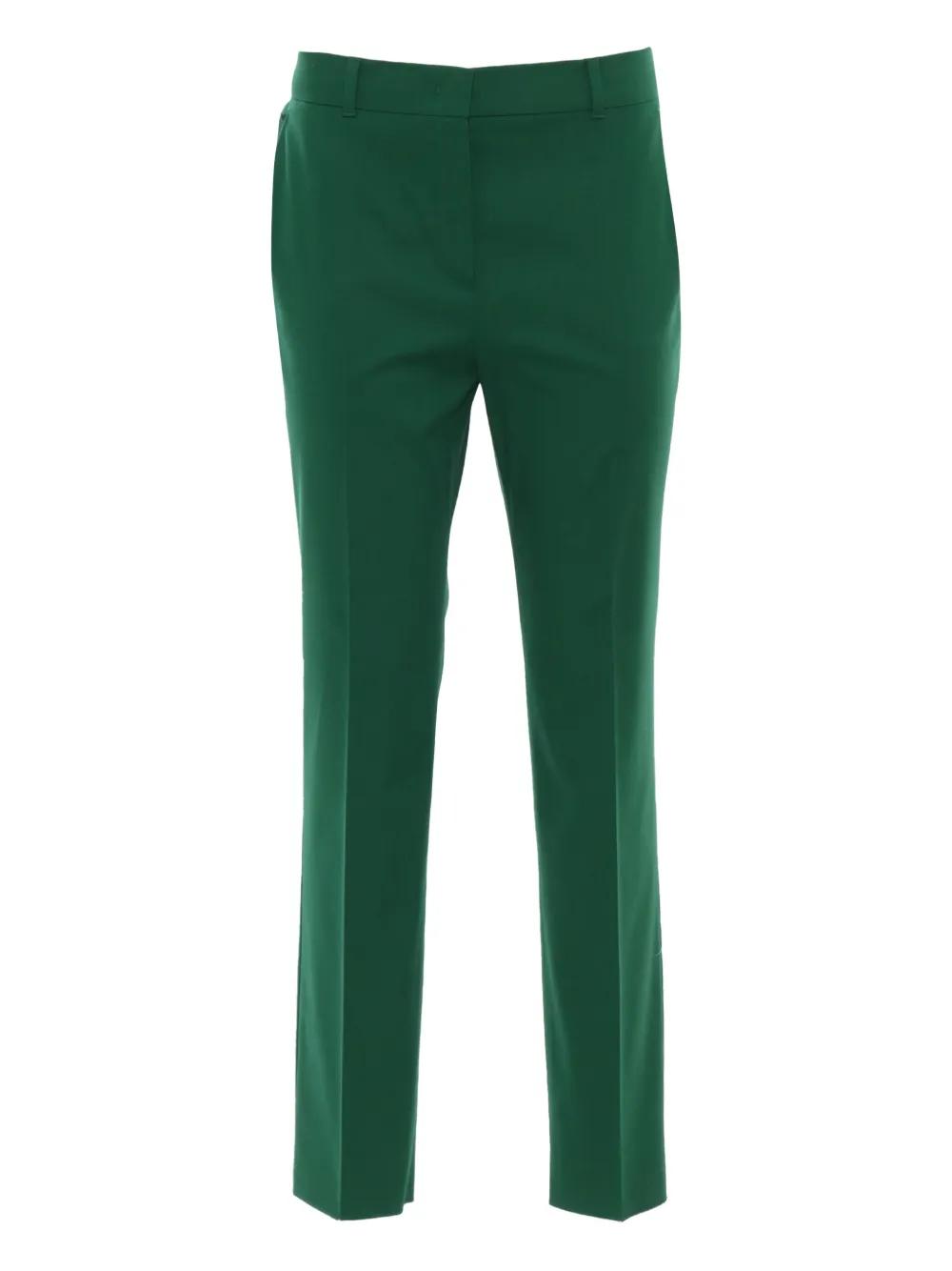 sand beige concealed front button, hook and zip fastening two diagonal pockets to the sides two rear welt pockets pressed crease