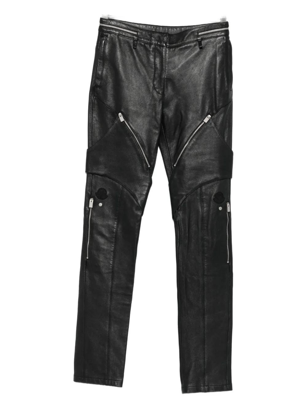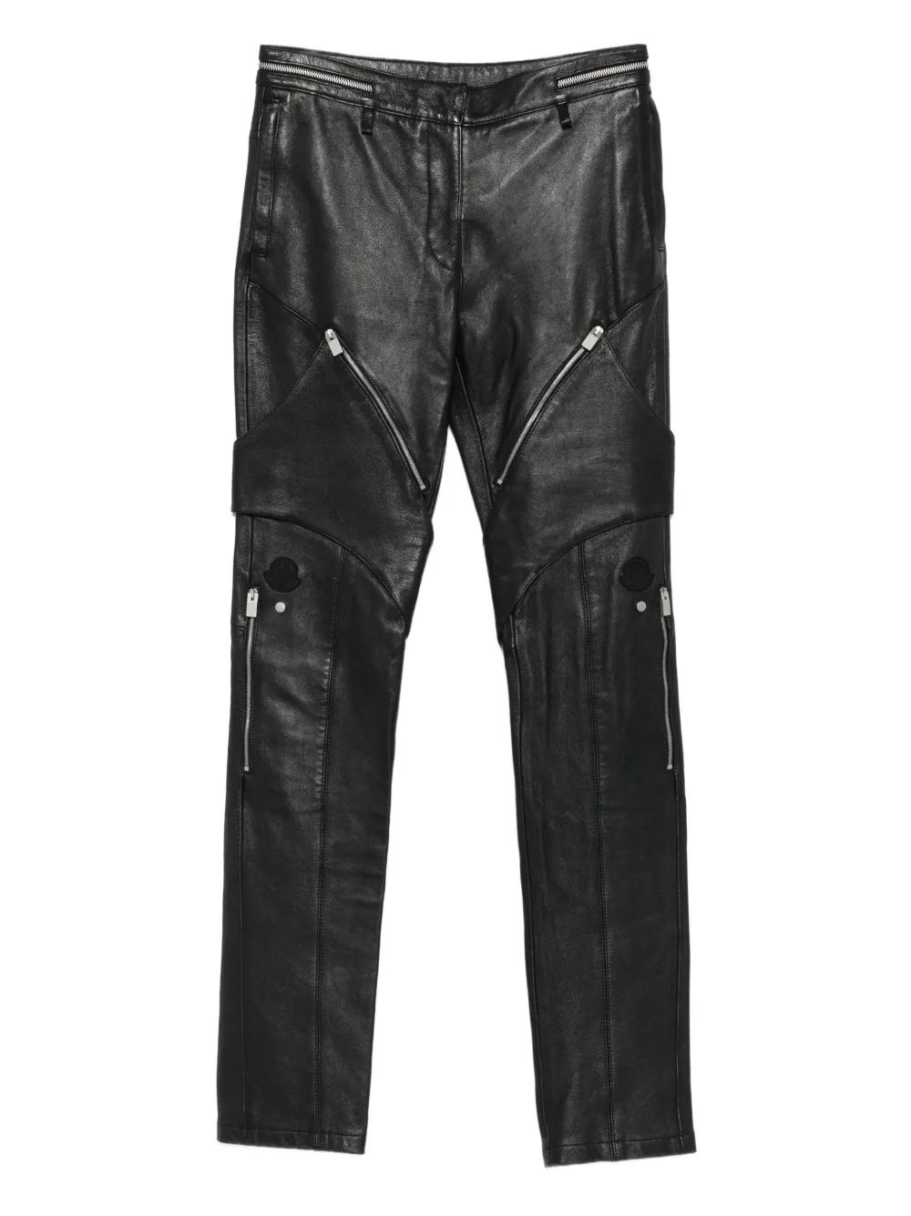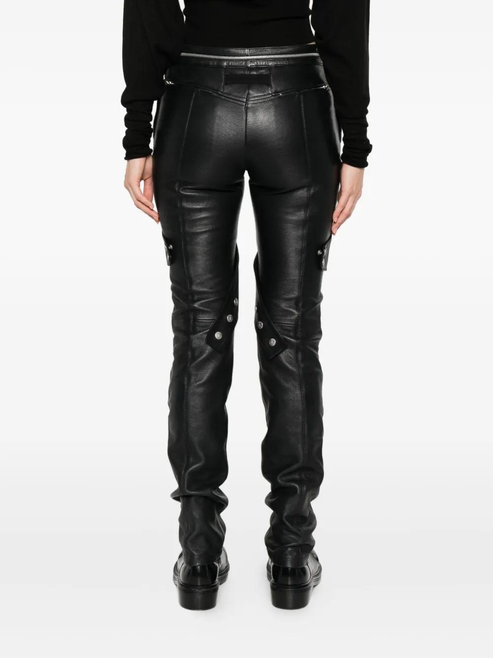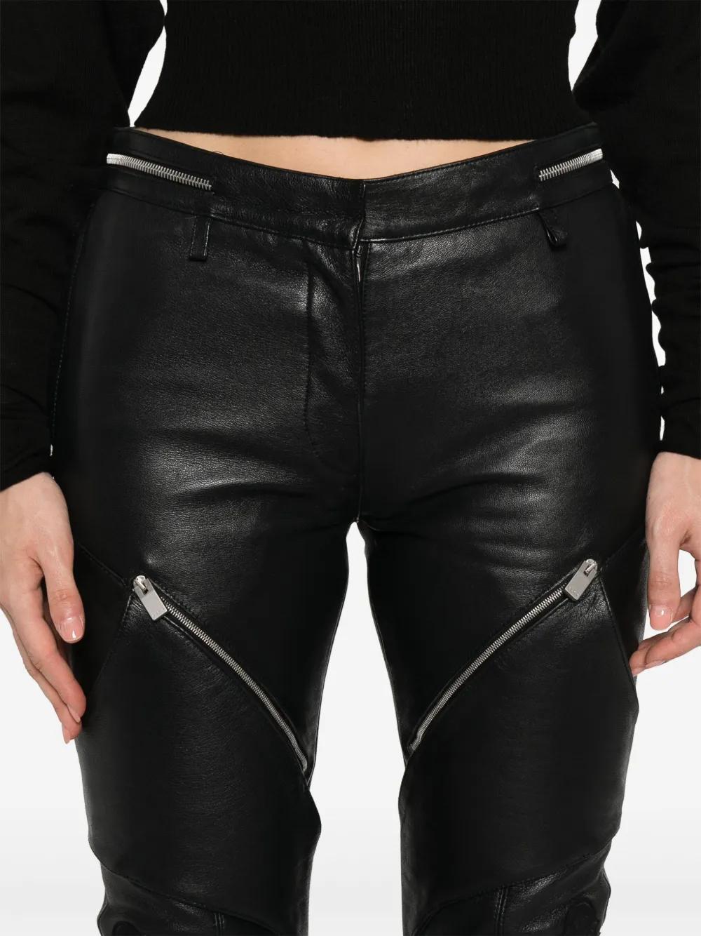 black sheepskin leather zip detailing seamed pockets stretch waistband panelled design