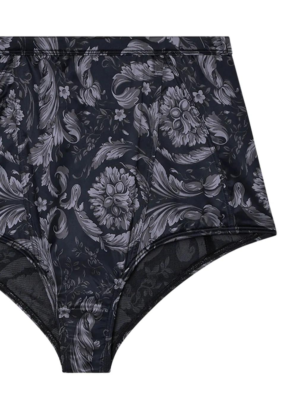 black stretch-jersey signature Barocco print elasticated waistband seam detailing authenticity QR code Just a reminder that this piece must be tried on over your own garments. This piece comes with a certificate of authenticity.