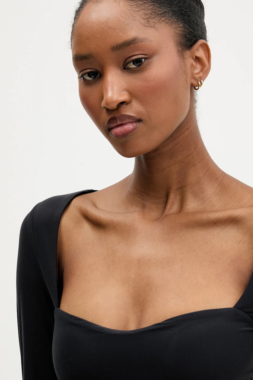 - Dopasowany, podkreślający sylwetkę fason. - Ozdobny dekolt. - Długi rękaw. - Wyjmowane wkładki lekko usztywniają i zapewniają dodatkowe krycie w biuście. - Długość: 67 cm. - Długość rękawa: 58 cm. - Szerokość pod pachami: 36 cm. - Wymiary podane dla rozmiaru: S.