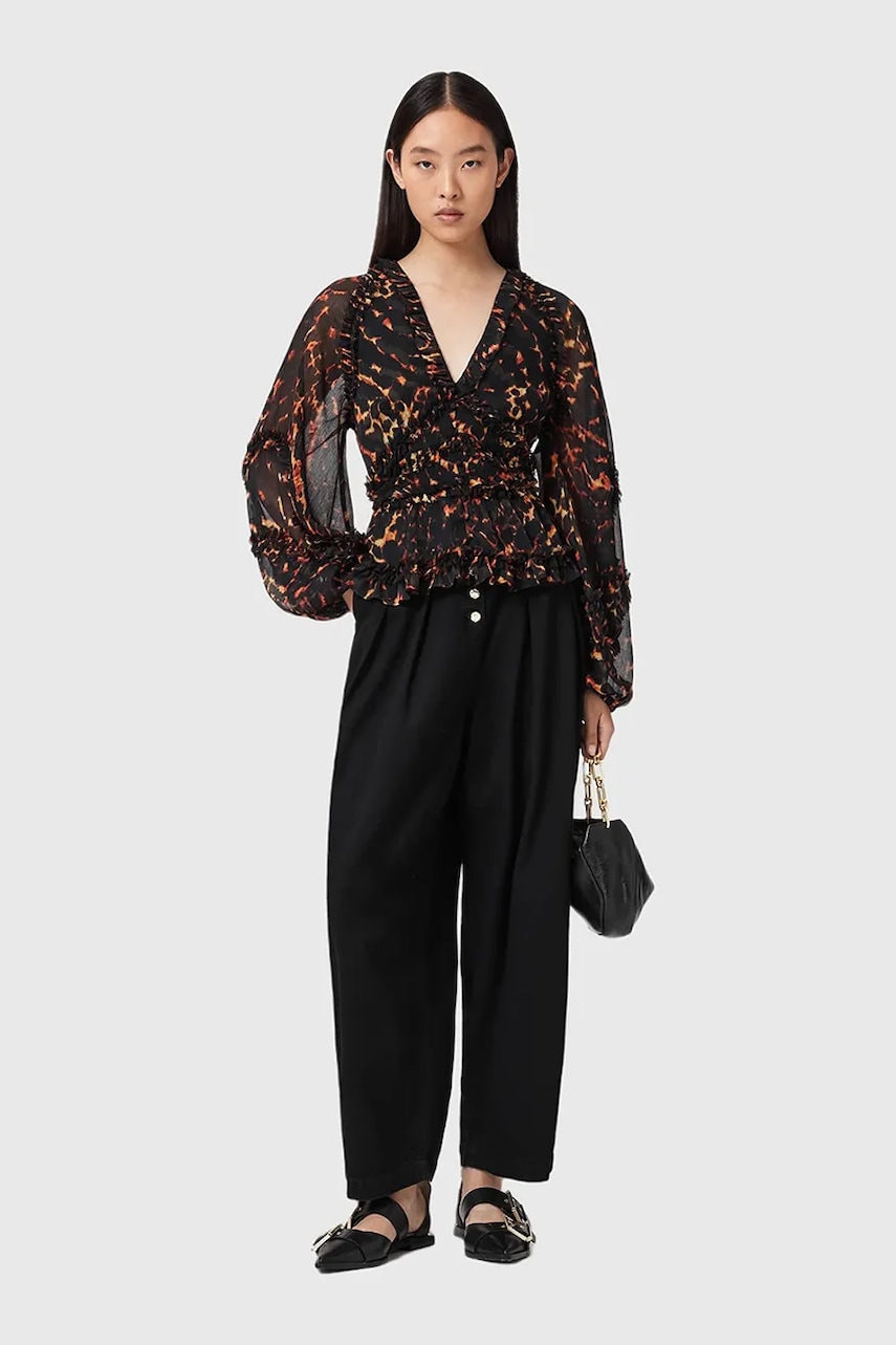 AllSaints bluzka damska kolor brązowy wzorzysta W052PD