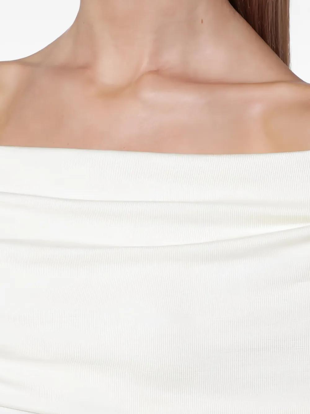 cream off-shoulder long sleeves draped detail gathered detail fitted design