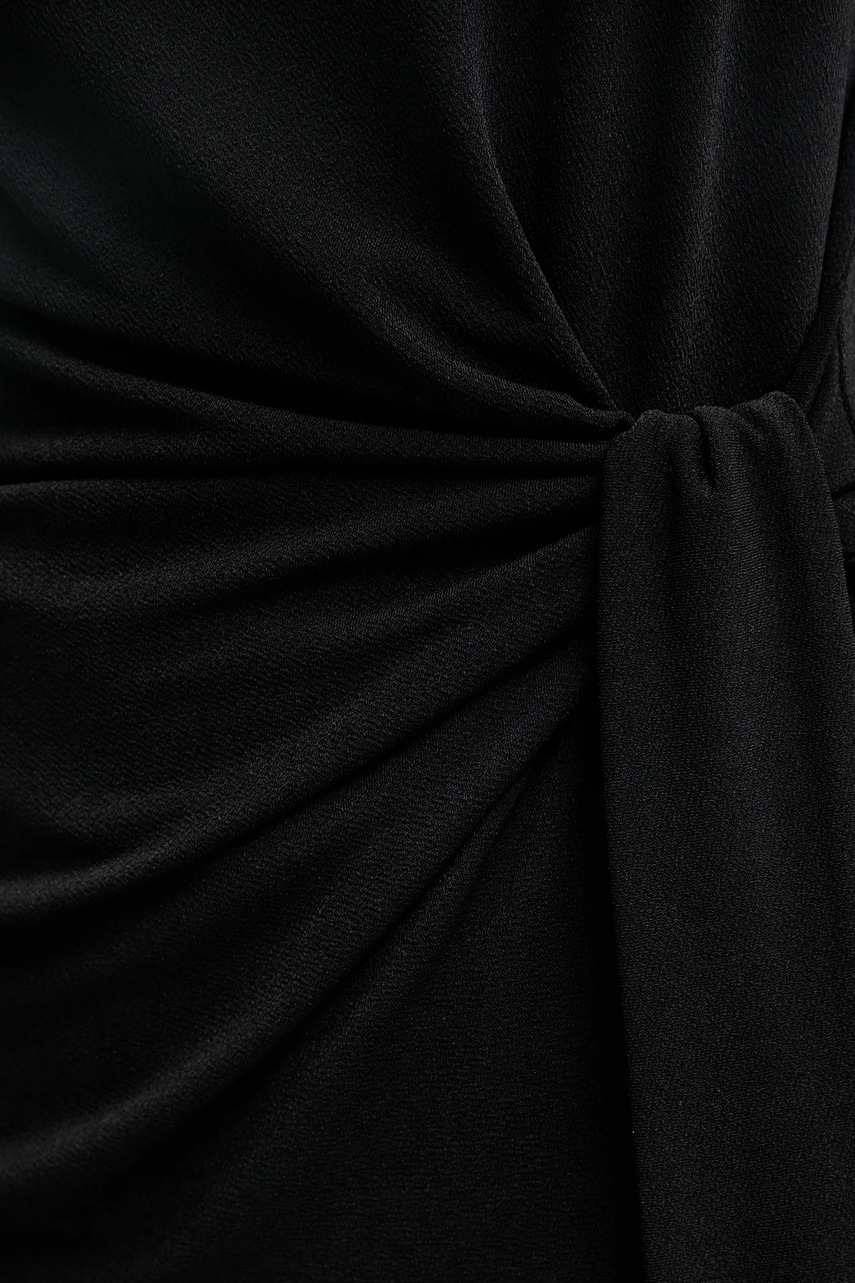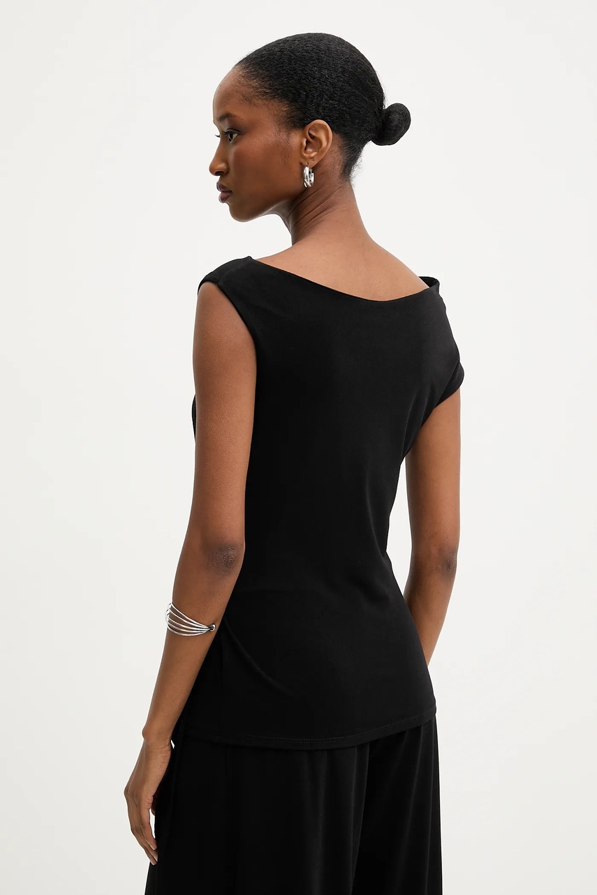 - Dopasowany fason nie krępujący ruchów. - Klasyczny, okrągły dekolt. - Ozdobne wiązanie. - Długość: 53 cm. - Szerokość pod pachami: 40 cm. - Wymiary podane dla rozmiaru: S.