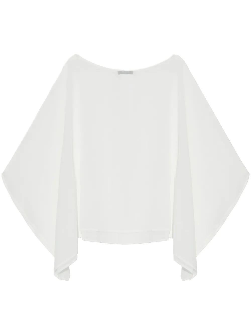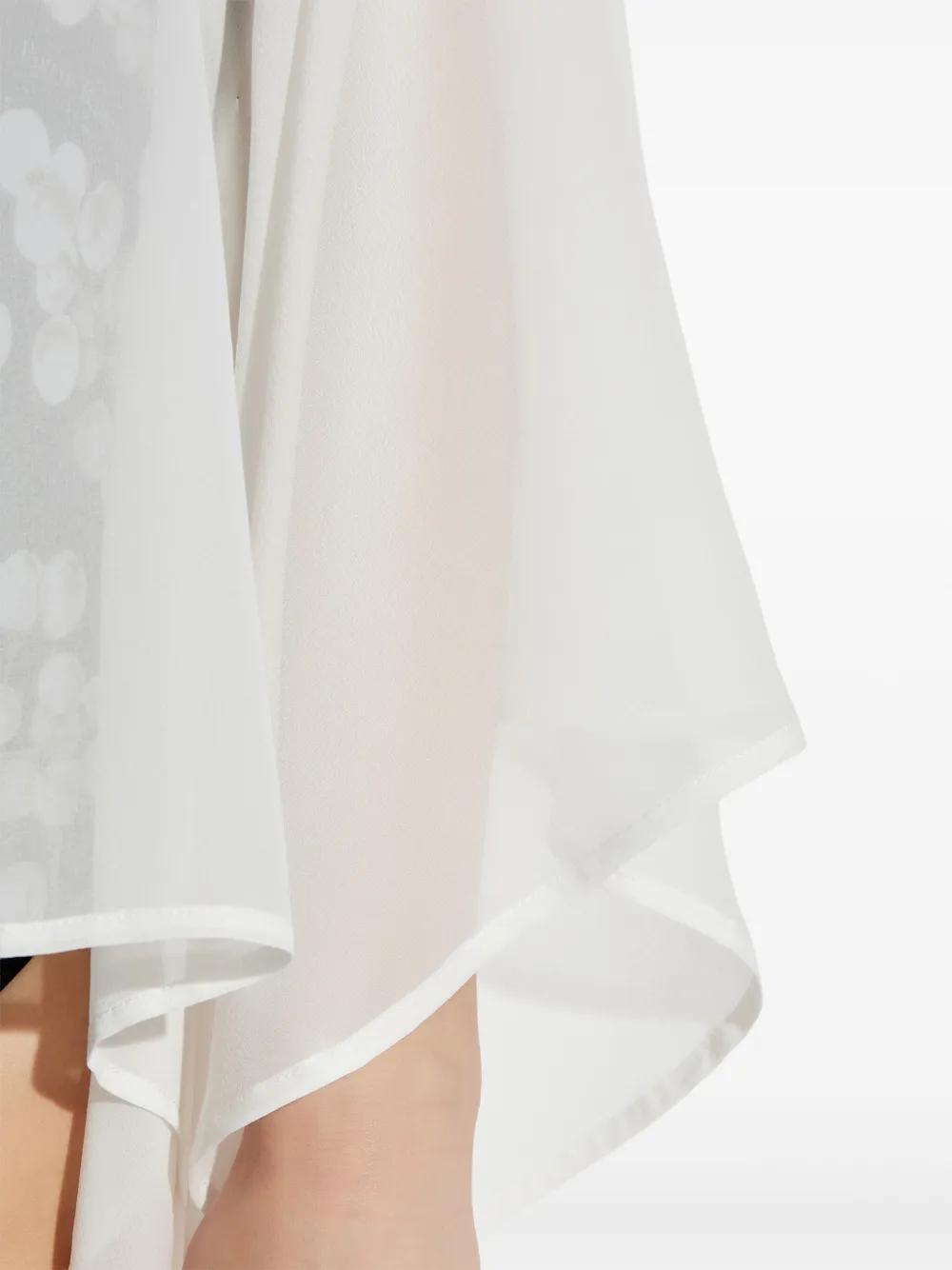 white cape design semi-sheer construction slash neck asymmetric sleeves