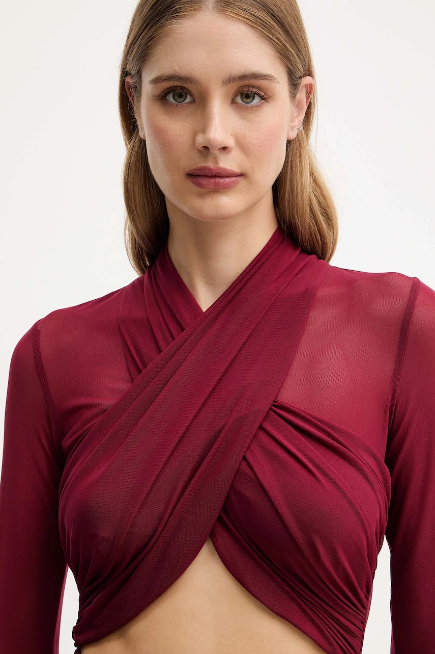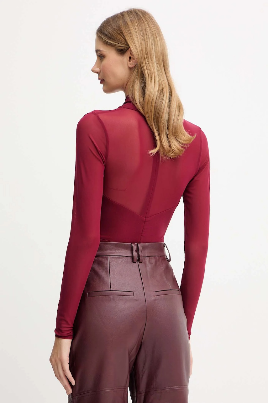 - Model w fasonie body. - Zapięcie w kroku na zatrzaski dla pełnej funkcjonalności. - Z tyłu zapięcie na suwak. - Model ze wstawkami z transparentnego materiału. - Ozdobne wycięcie z przodu. - Długość: 70 cm. - Szerokość pod pachami: 36 cm. - Długość rękawa: 57 cm. - Wymiary podane dla rozmiaru: S.