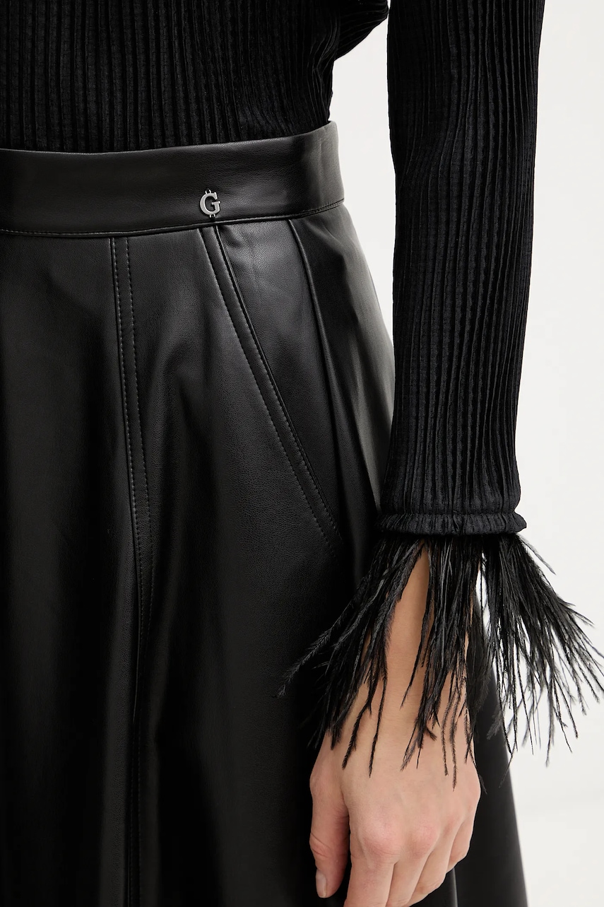 - Dopasowany fason nie krępujący ruchów. - Plisowany model. - Ozdobne, naturalne pióra dopinane na zatrzaski. - Klasyczny, okrągły dekolt. - Długość rękawa: 52 cm. - Długość: 61 cm. - Szerokość pod pachami: 45 cm. - Wymiary podane dla rozmiaru: S.