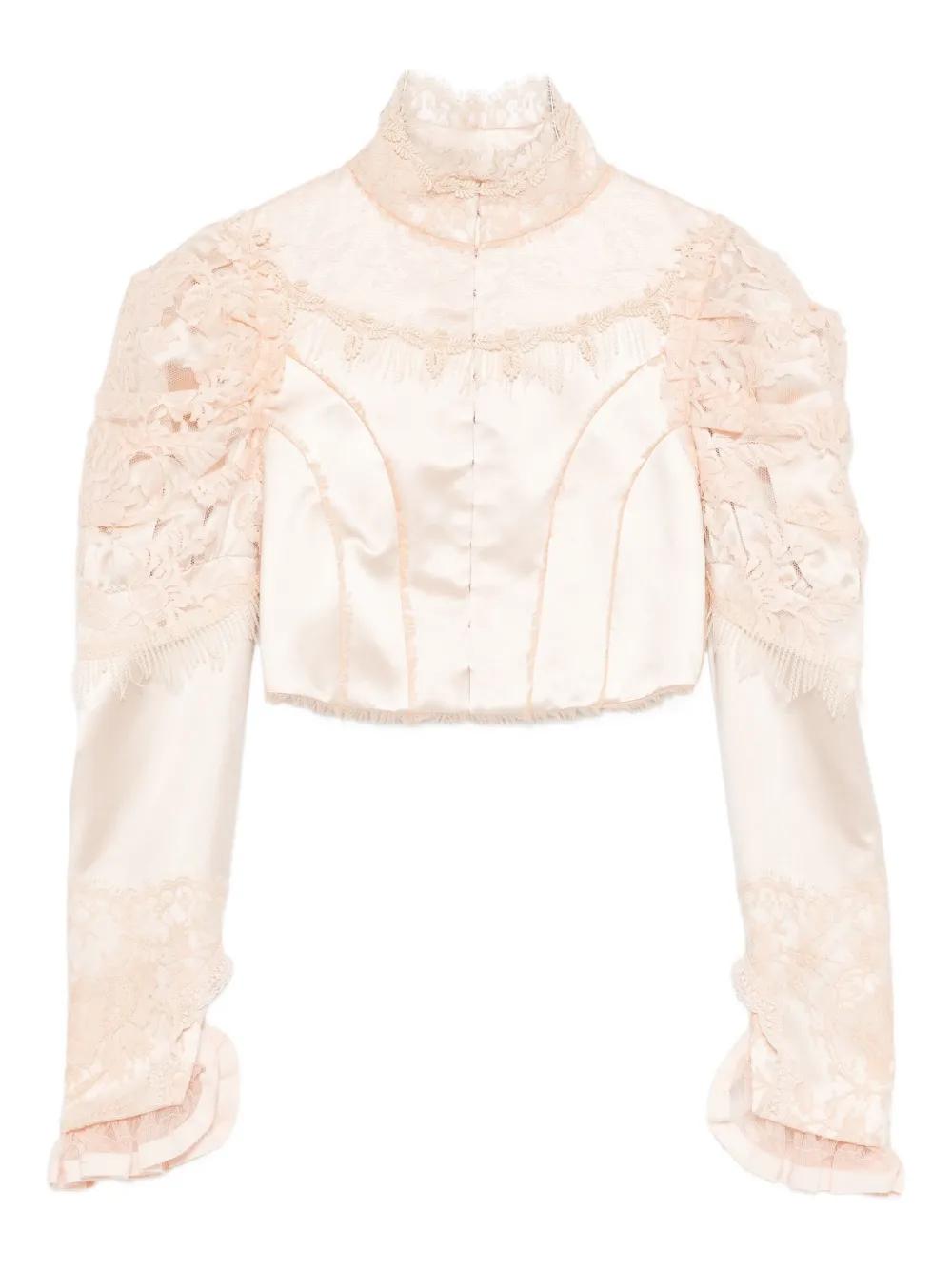 white ruffled trim button fastening long sleeves large collar buttoned cuffs