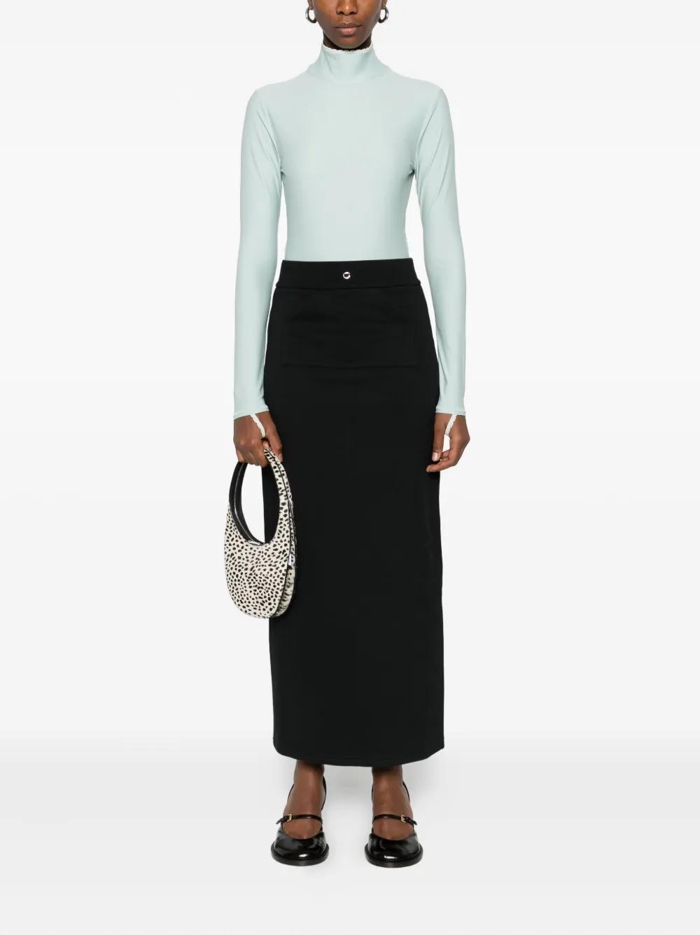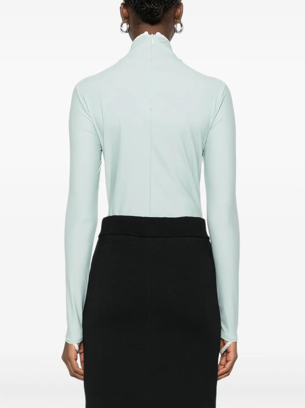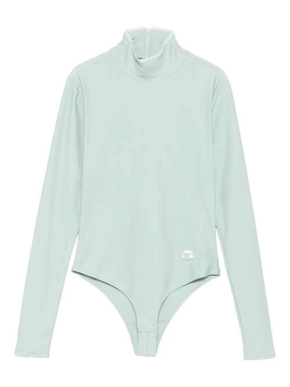 green high neck long sleeves snap fastening close-fitting lace trim logo detail