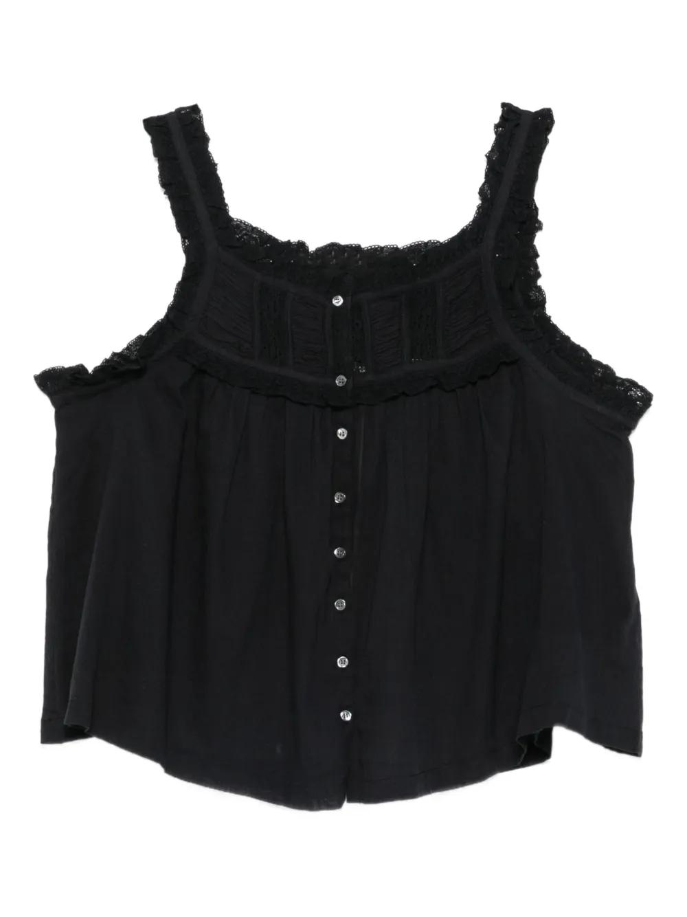 black front button fastening V-neck three-quarter length sleeves broderie anglaise