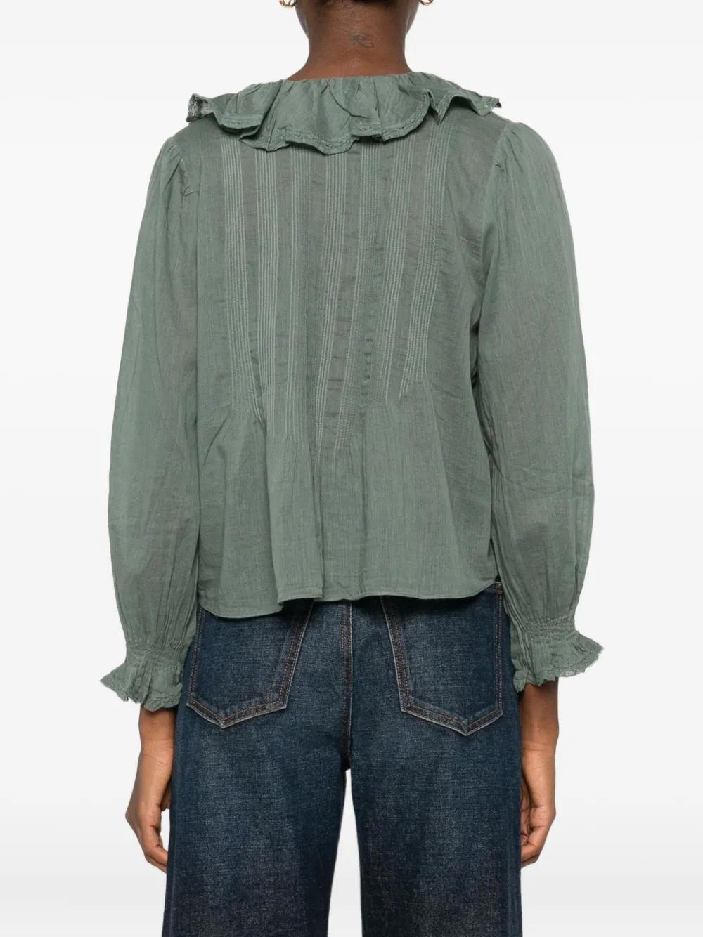 black ruffled trim long sleeves gathered cuffs organic cotton