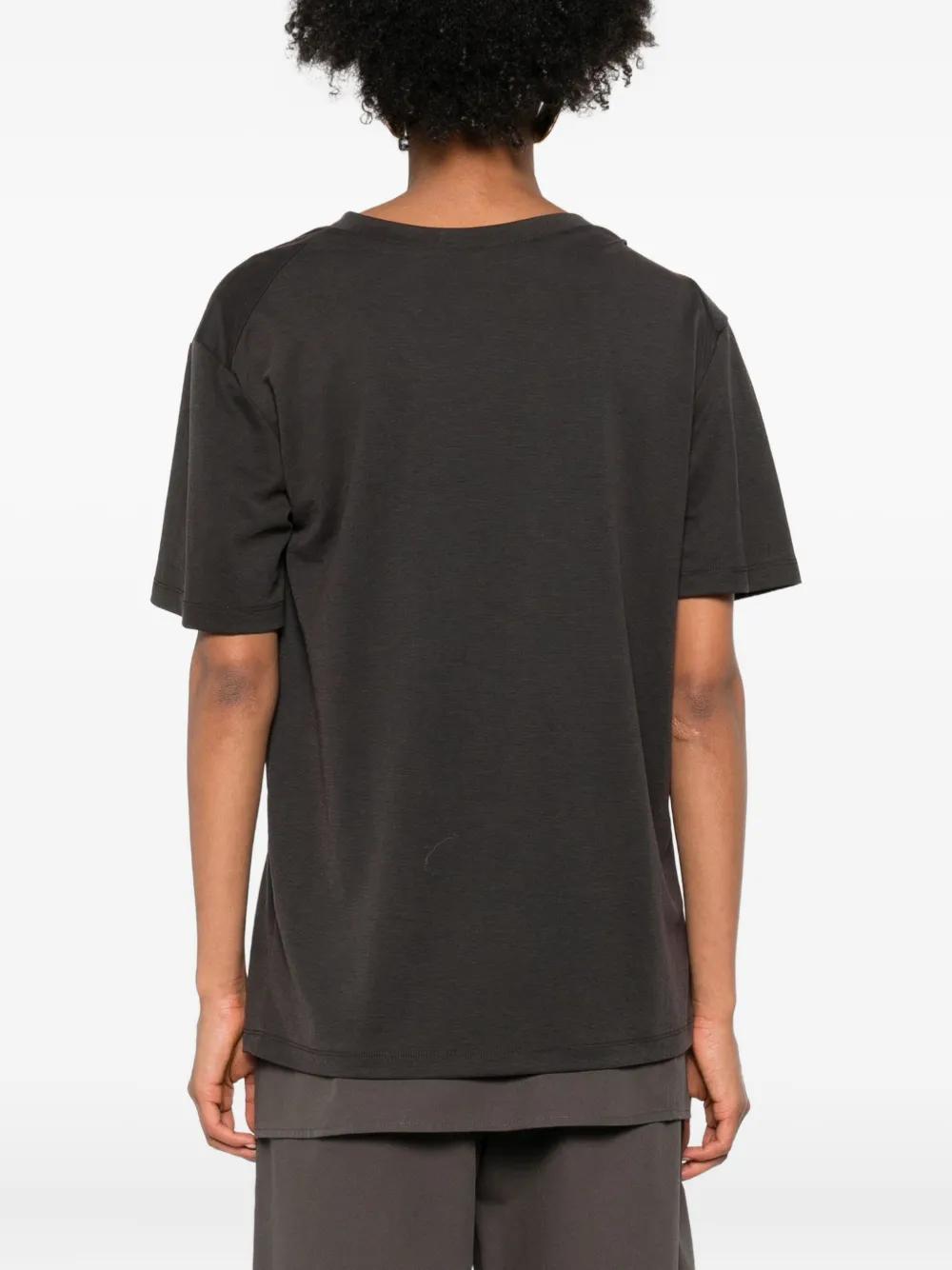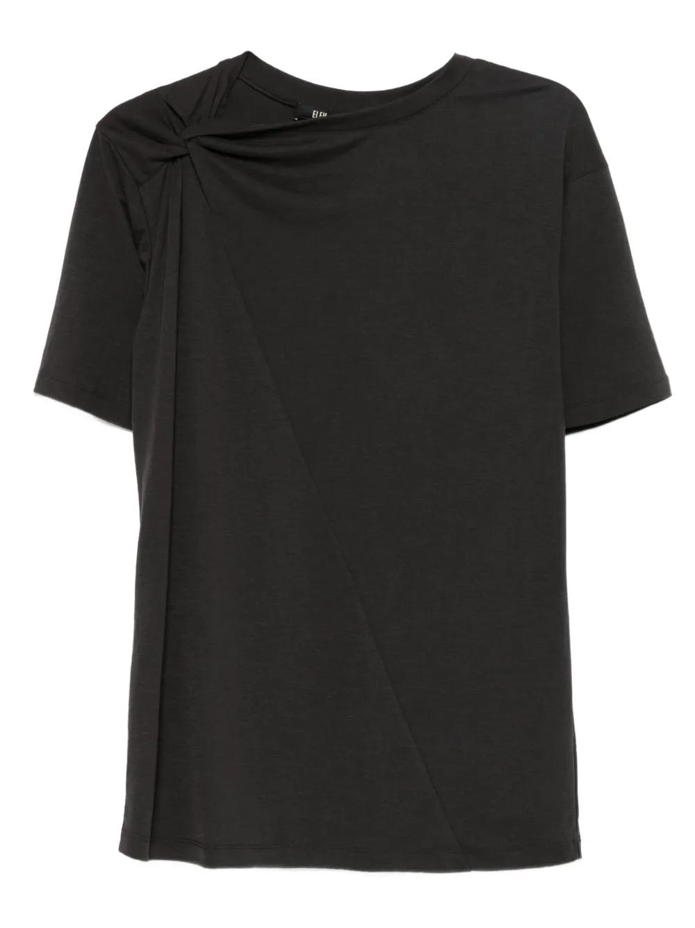 grey short sleeves twisted-knot detail asymmetrical panelling straight hem