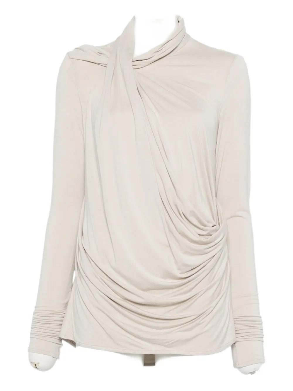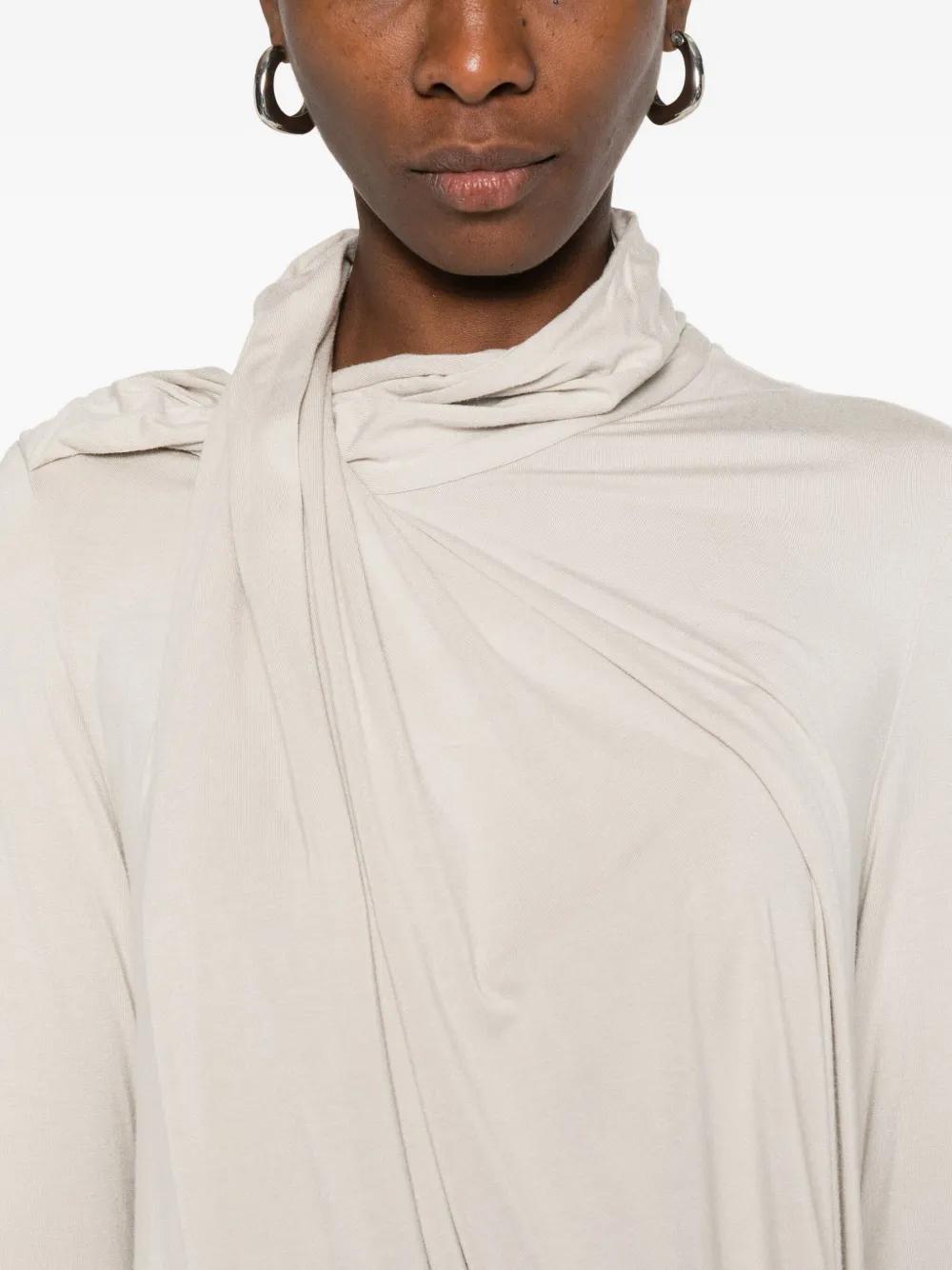 grey draped detail long sleeves mock neck ribbed cuffs ribbed hem