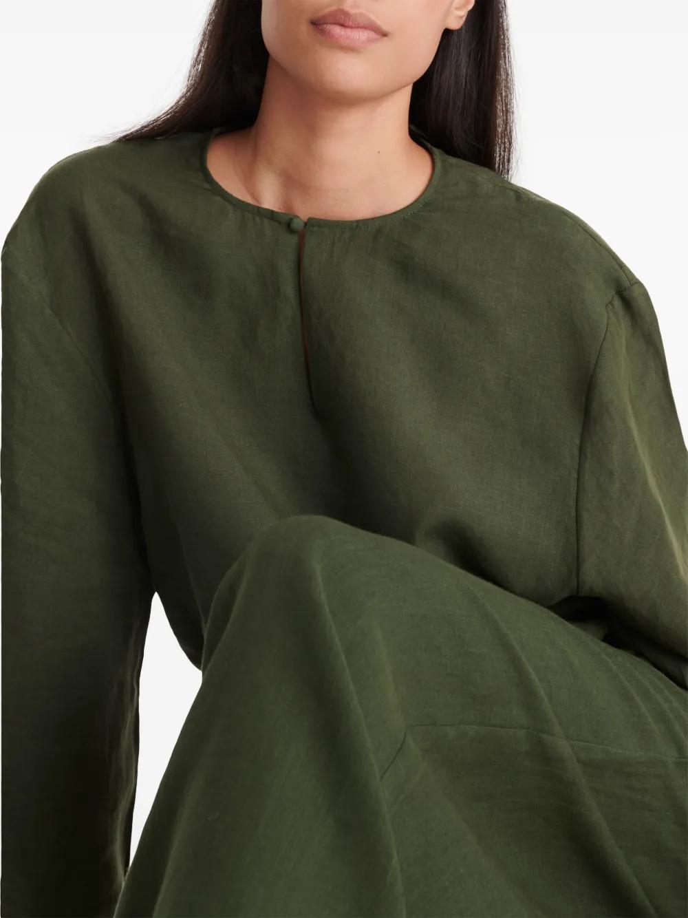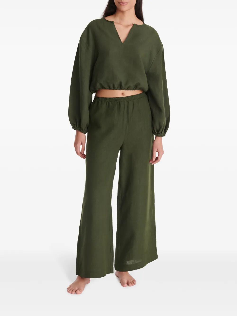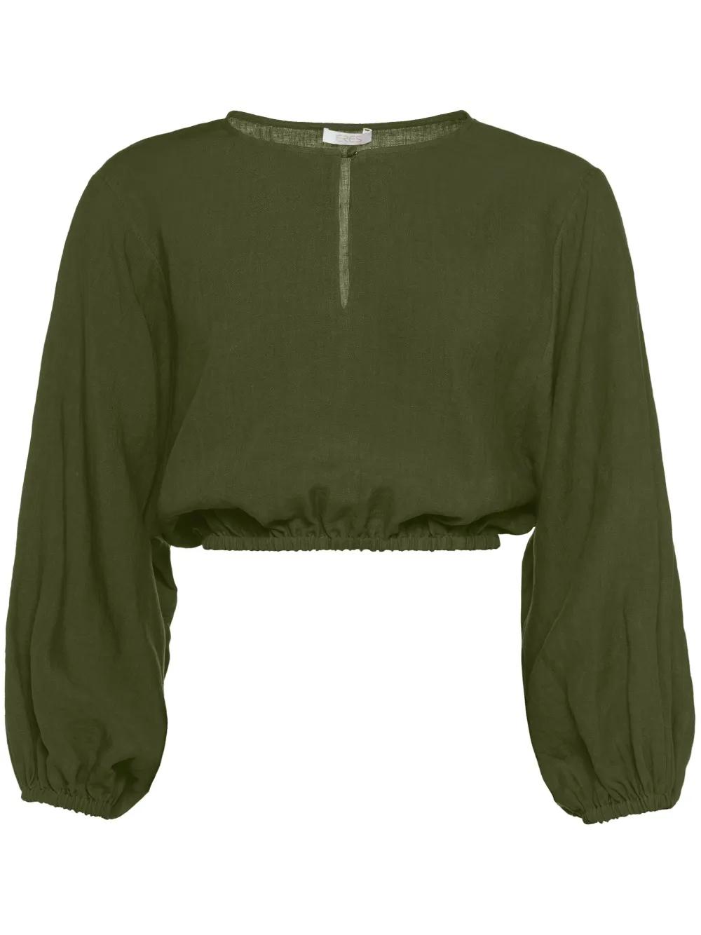fern green linen/flax keyhole neck long puff sleeves elasticated cuffs elasticated hem cropped