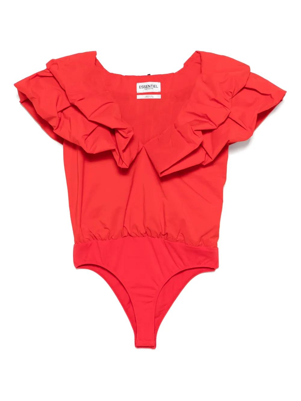 scarlet snap-fit fastening ruffle collar ruched detailing Just a reminder that this piece must be tried on over your own garments.