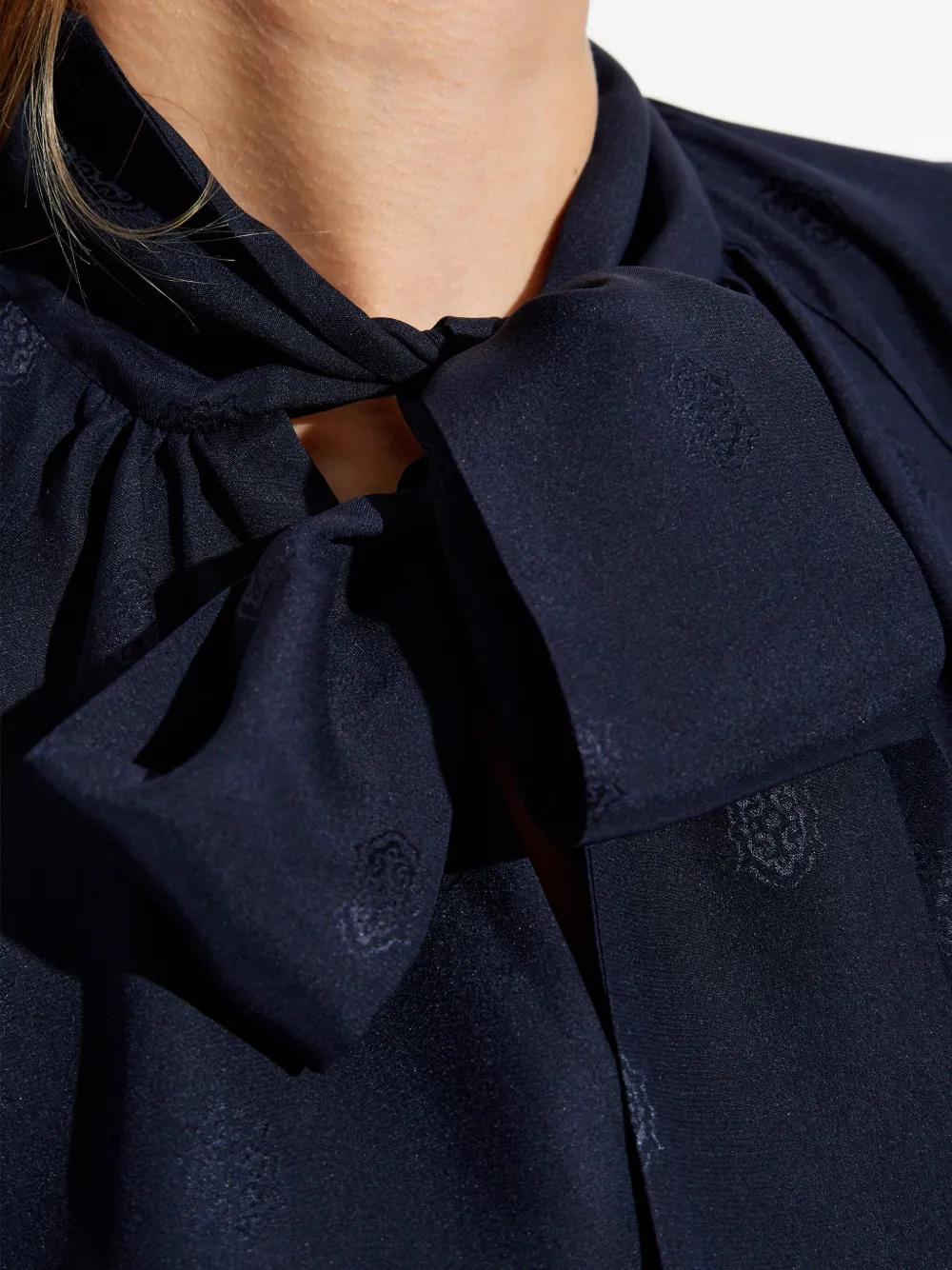 dark blue bow detail long sleeves buttoned cuffs tonal jacquard pattern