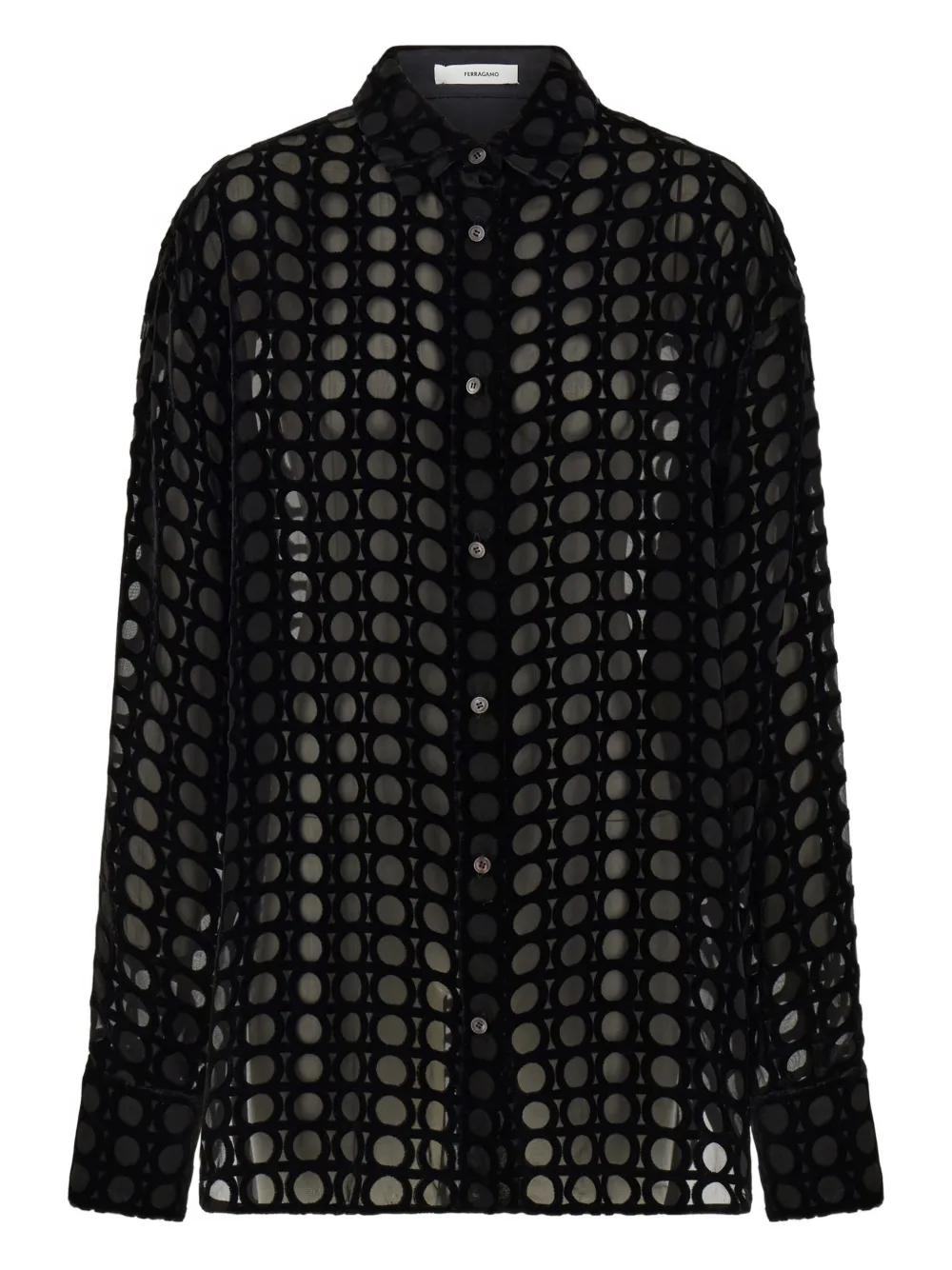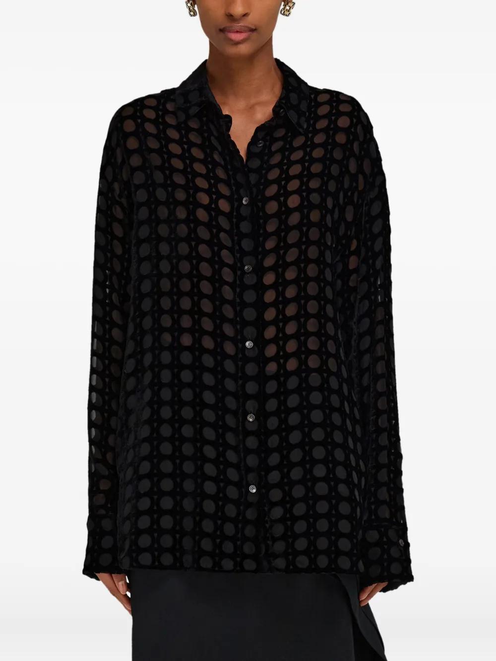 black front button fastening semi-sheer construction classic collar buttoned cuffs