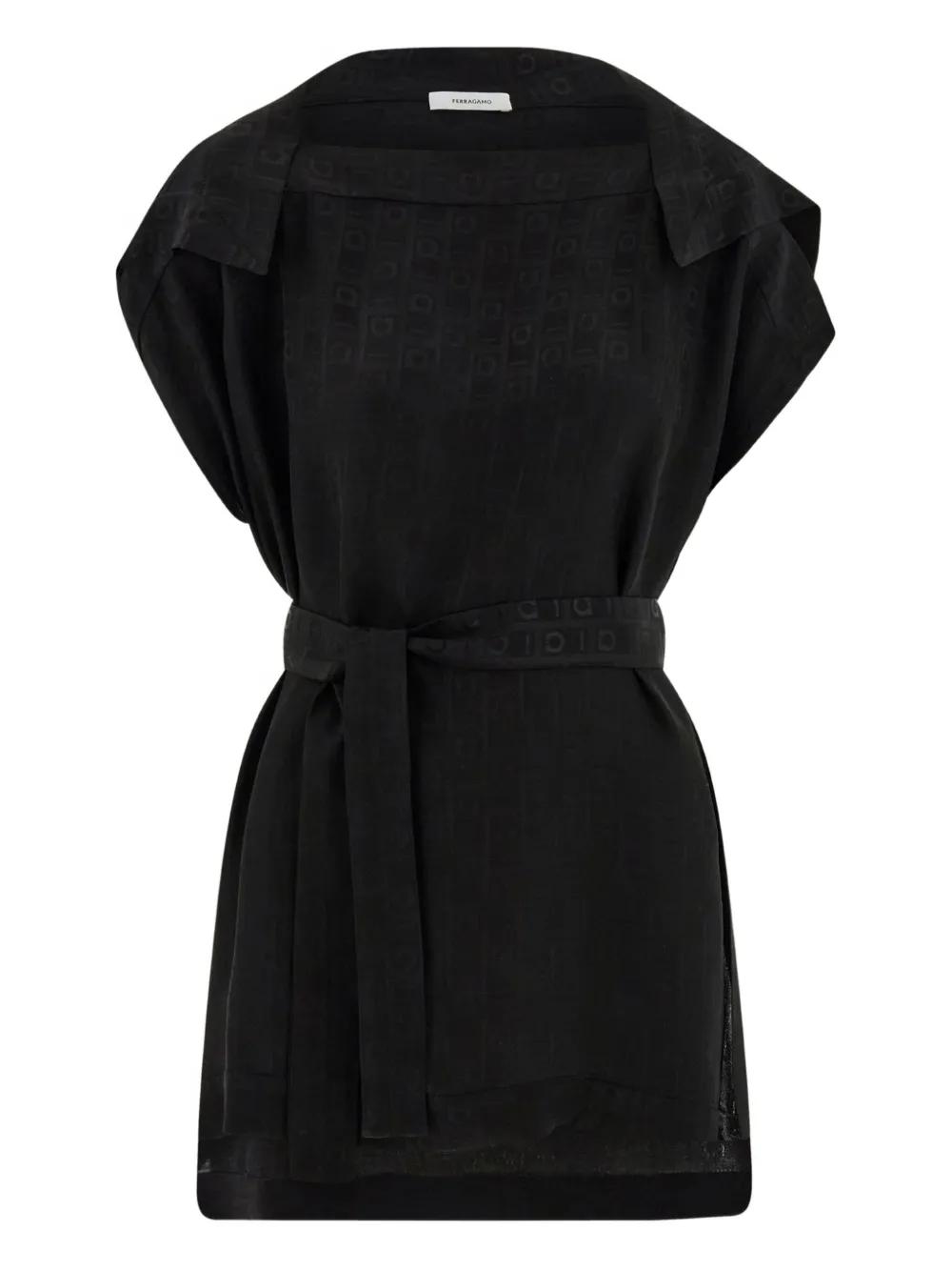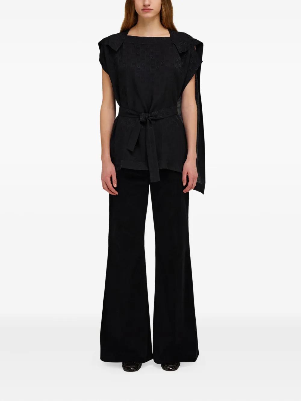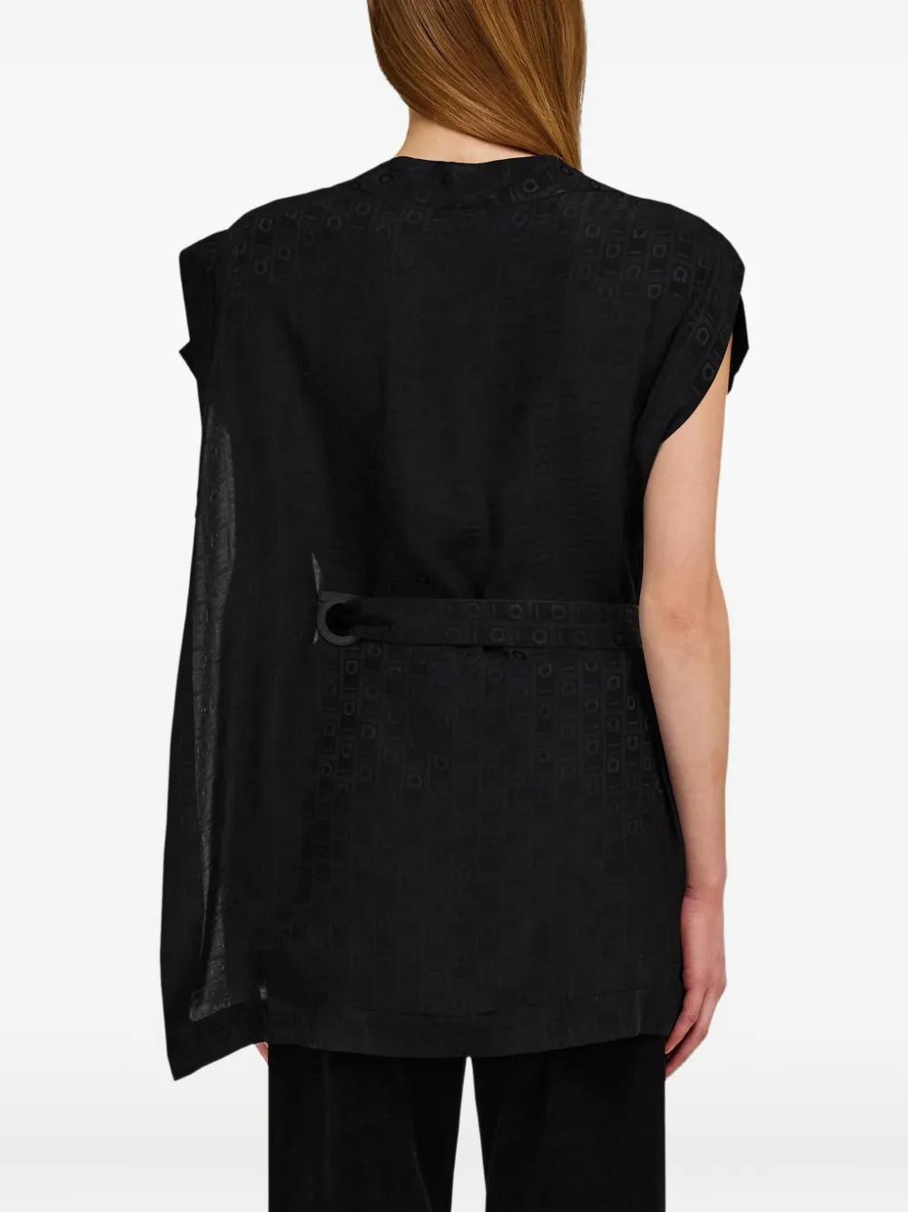 black front button fastening semi-sheer construction classic collar buttoned cuffs