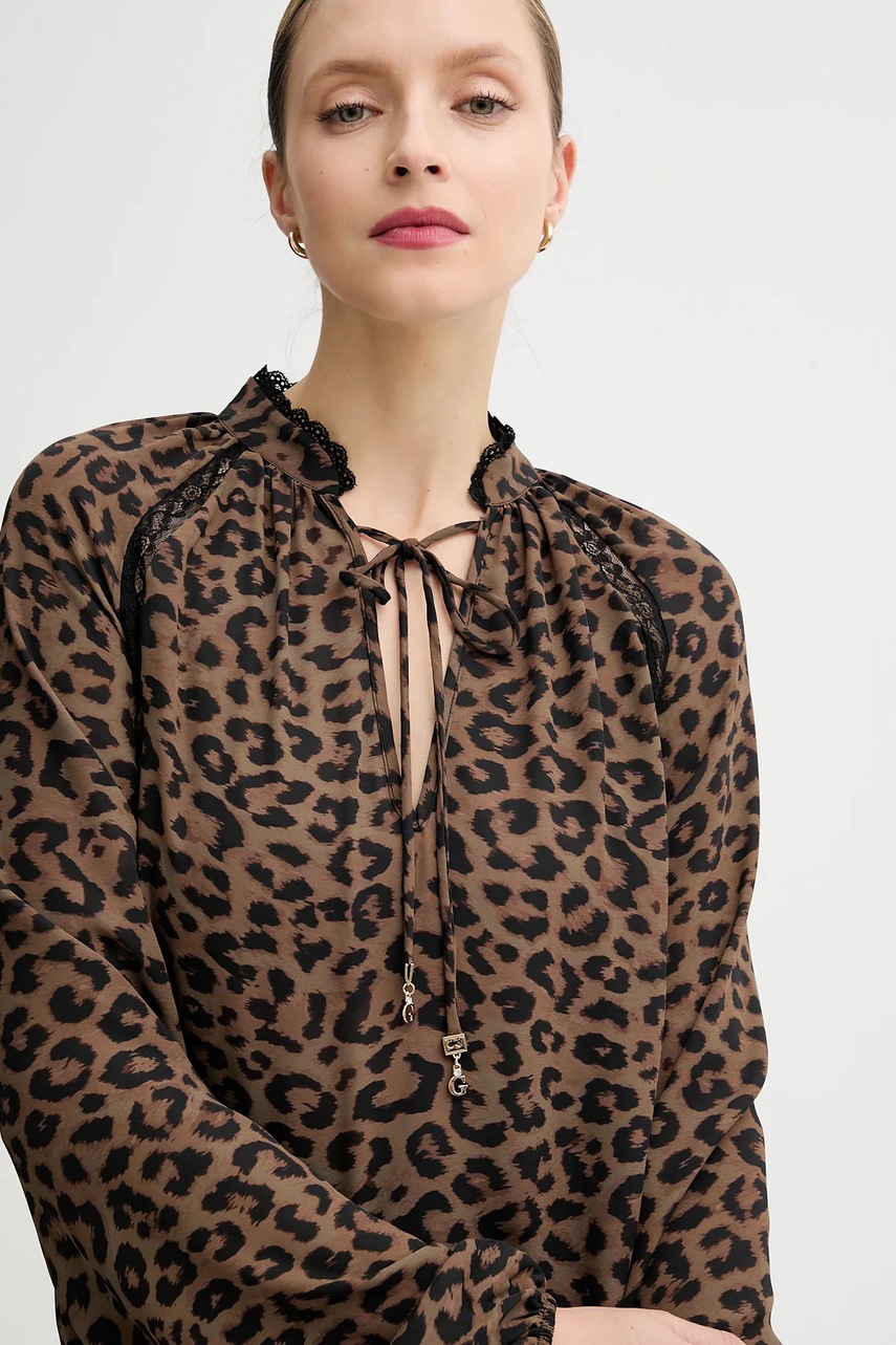 Guess bluzka NEW JOSETTE damska kolor brązowy wzorzysta W5BH74 WGLA2