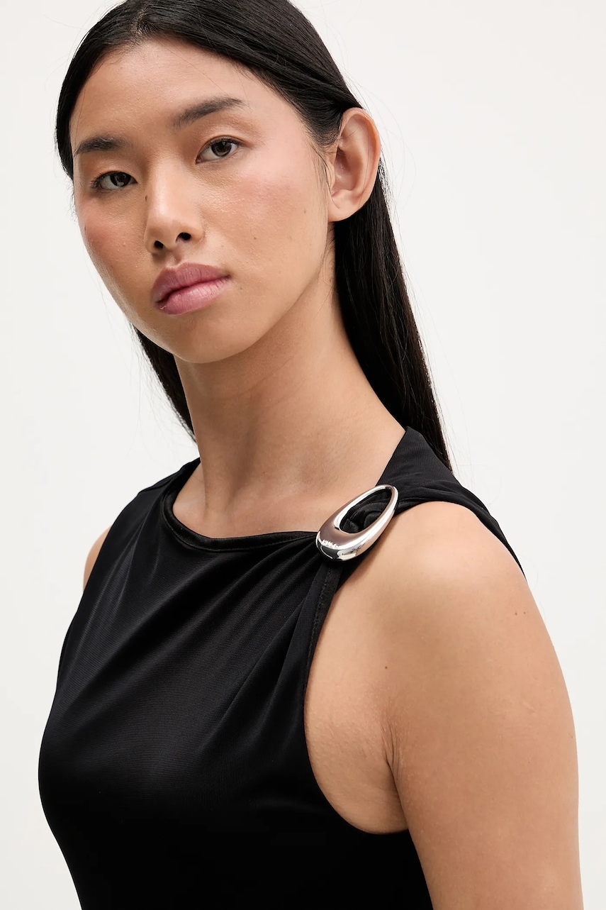 - Fason regular. - Model bez rękawów. - Okrągły dekolt. - Ozdobny detal. - Długość: 57 cm. - Szerokość pod pachami: 37 cm. - Wymiary podane dla rozmiaru: S.