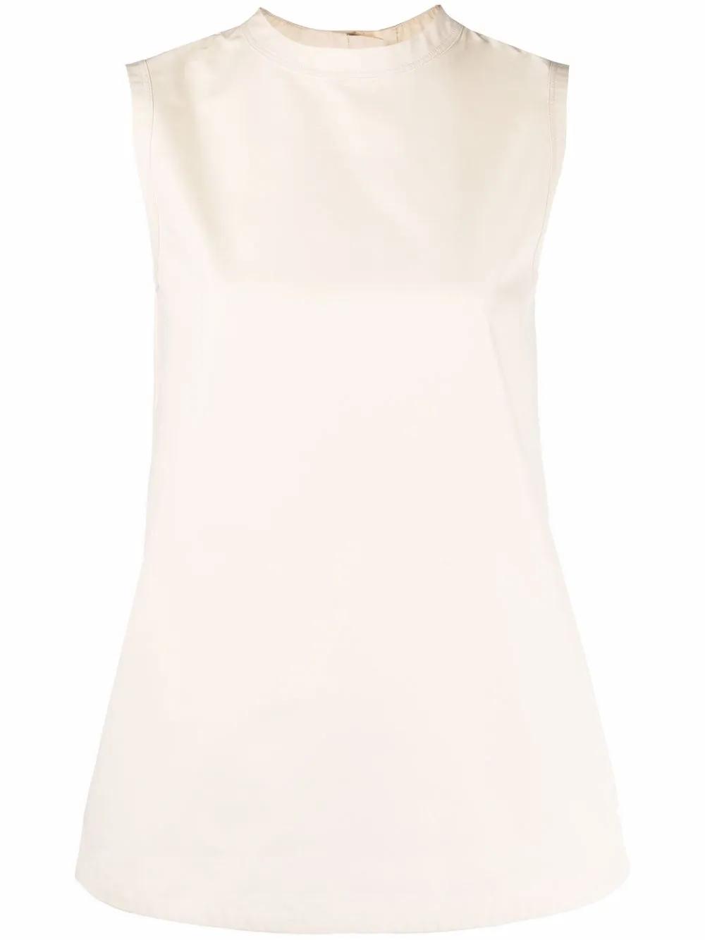 cream cotton round neck sleeveless rear zip fastening straight hem