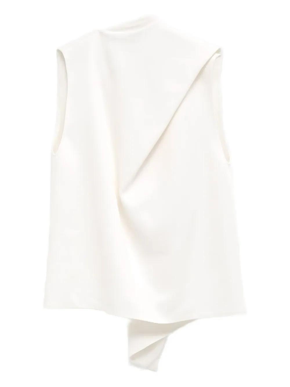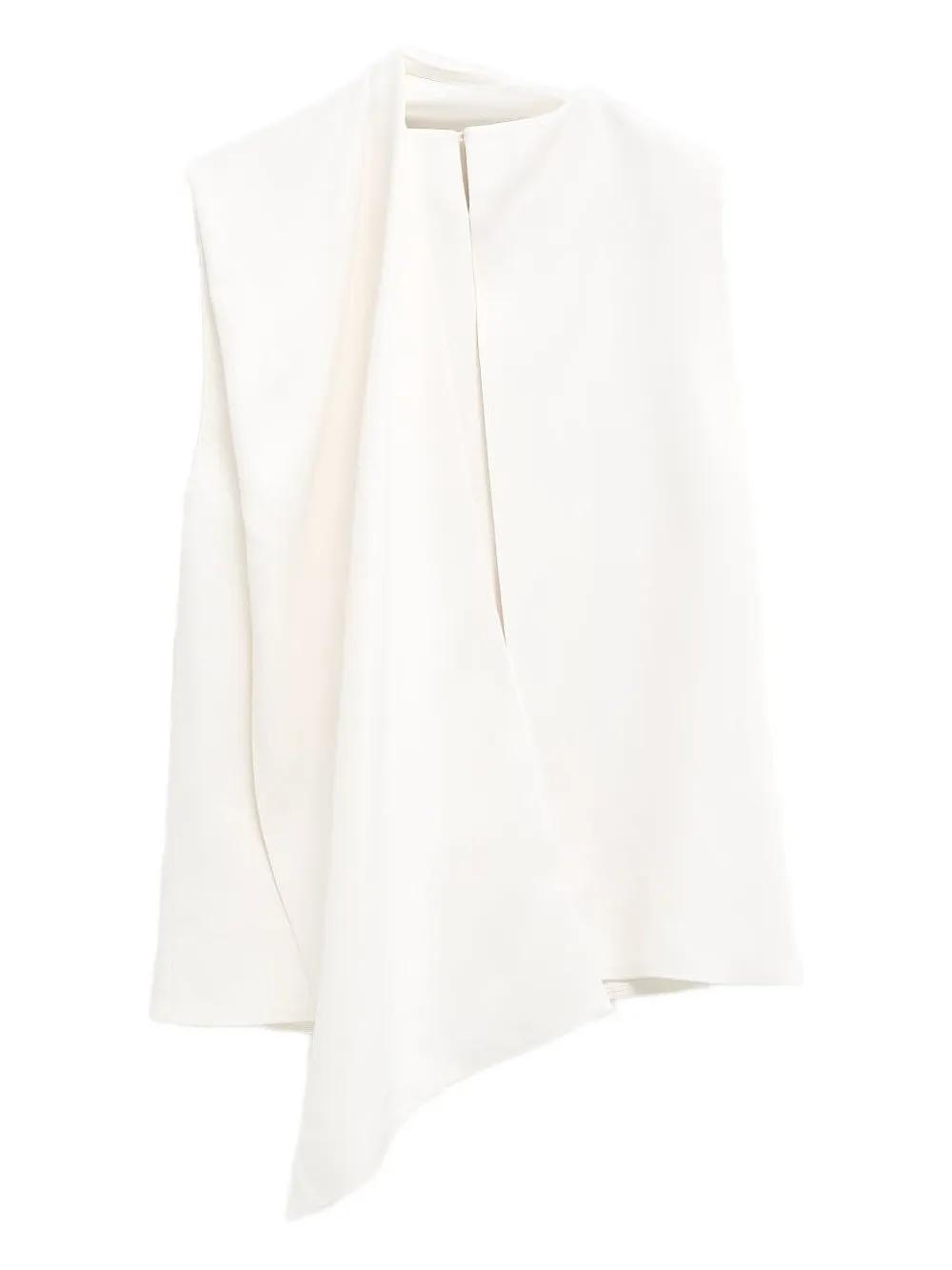 chalk draped detail sleeveless rear button fastening asymmetric hem