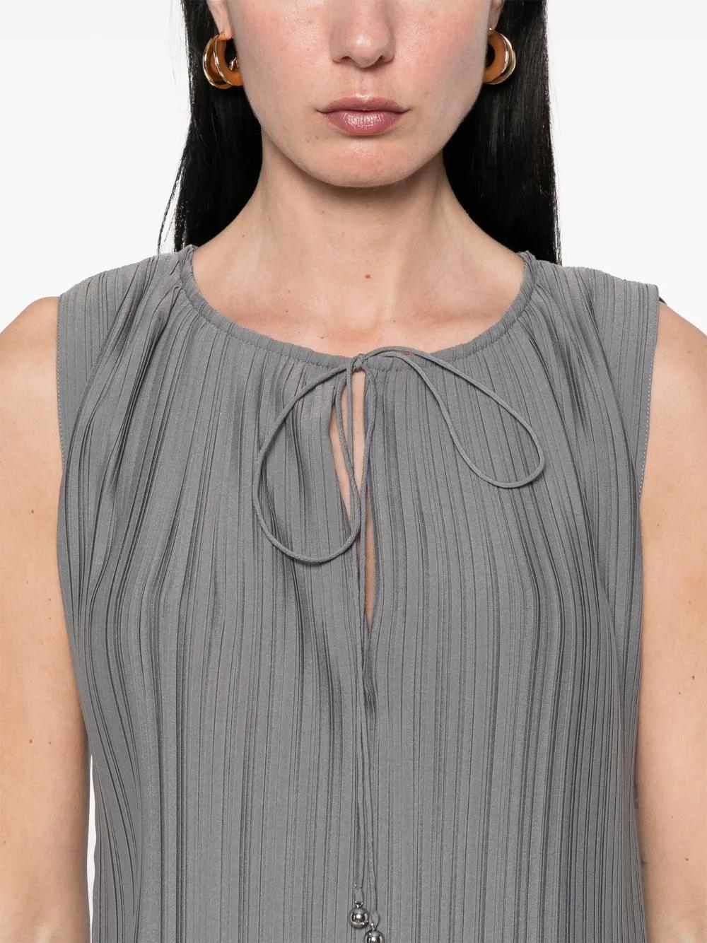 brown zebra pattern tie detail short sleeves V-neck adjustable tie fastening