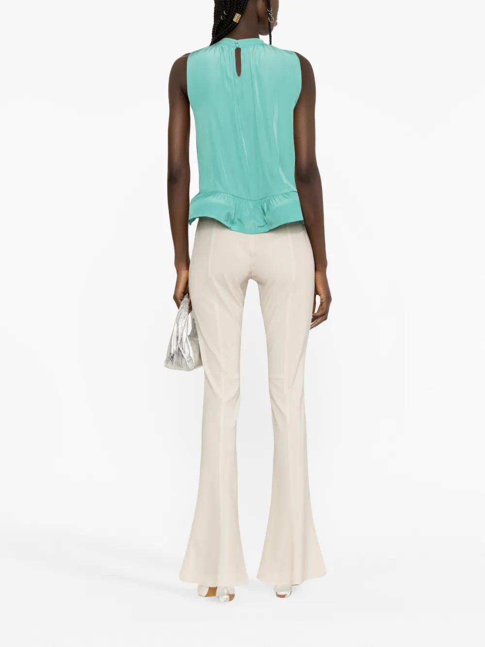 jade green crepe de chine halterneck keyhole detail to the rear peplum hem