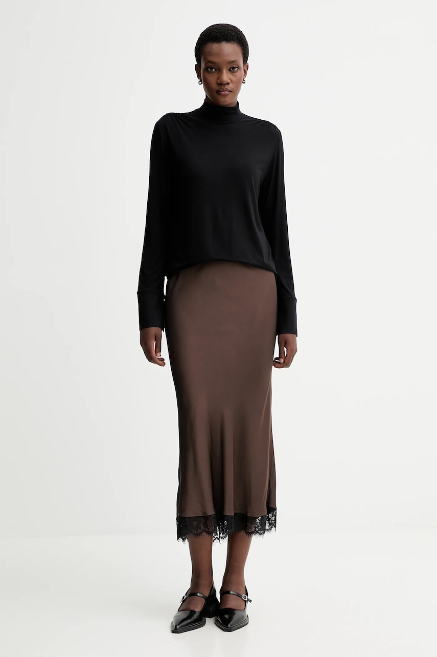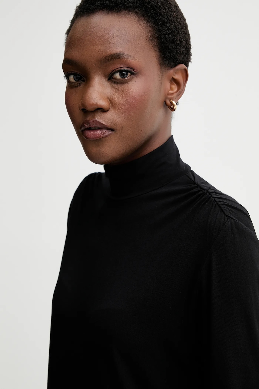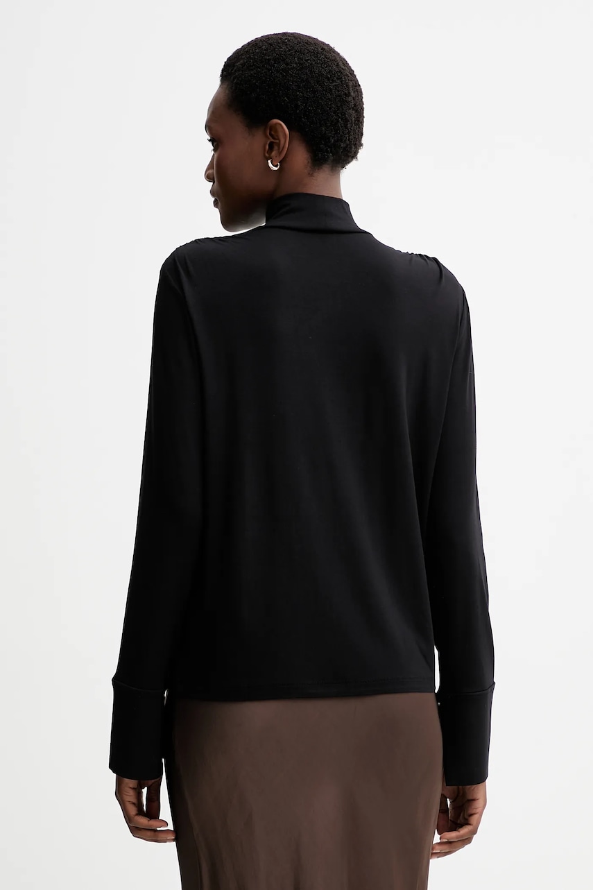 - Produkt wyprodukowany zgodnie z założeniami Fair Wear Foundation, organizacji zrzeszającej marki odzieżowe tworzące produkty w bardziej zrównoważony i etyczny sposób. Produkty oznaczone znakiem Fair Wear powstały w fabrykach, które pozytywnie przeszły zewnętrzny audyt i zapewniają pracownikom odpowiednie warunki pracy oraz wynagrodzenie. - Model wykonany z wiskozy, do produkcji której została wykorzystana pulpa drzewna pochodząca z odpowiedzianego źródła, które stanowią zrównoważone, specjalnie uprawiane do tego celu lasy. - Prosty, nie blokujący ruchów fason. - Przylegający do szyi półgolf gwarantuje dodatkową ochronę przed chłodem. - Ozdobne rozcięcia na rękawach. - Efektowne marszczenia. - Długość rękawa: 64 cm. - Długość: 62 cm. - Szerokość pod pachami: 50 cm. - Wymiary podane dla rozmiaru: S.