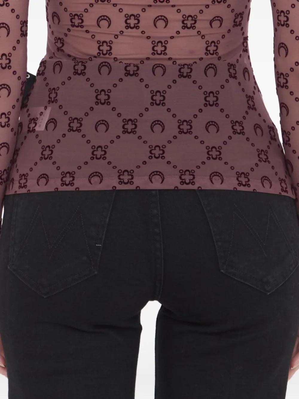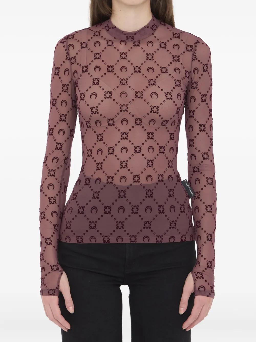 purple moonogram pattern mesh fabric high-neck long-sleeve thumb holes