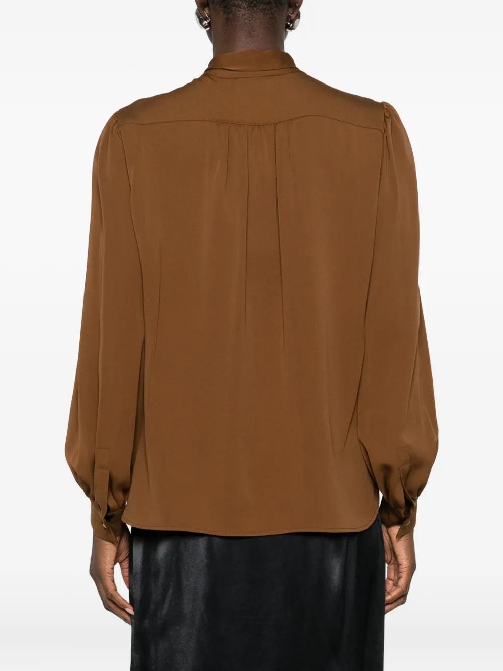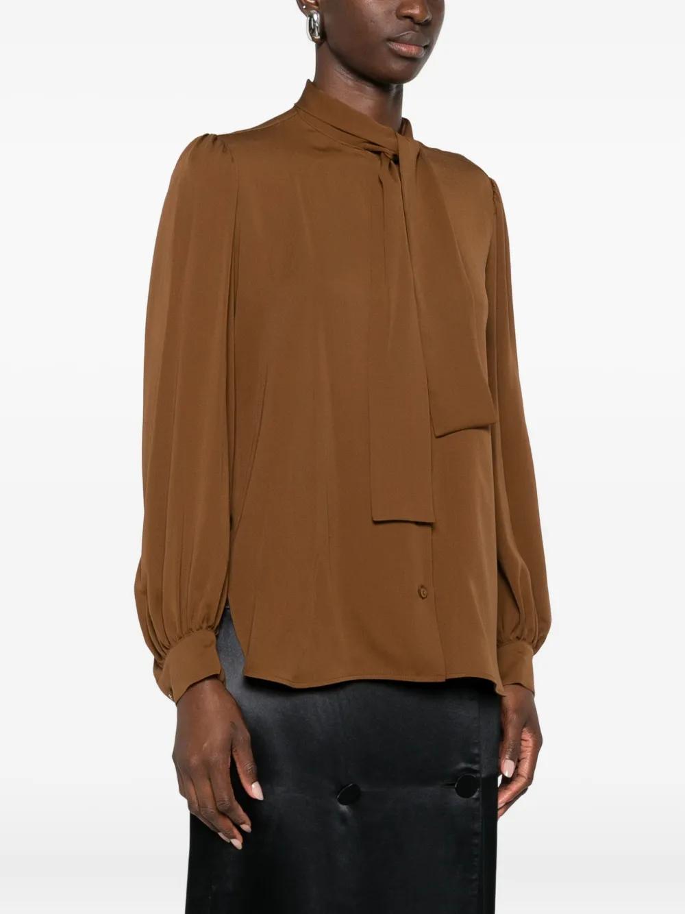 camel brown front button fastening bow detailing long sleeves buttoned cuffs