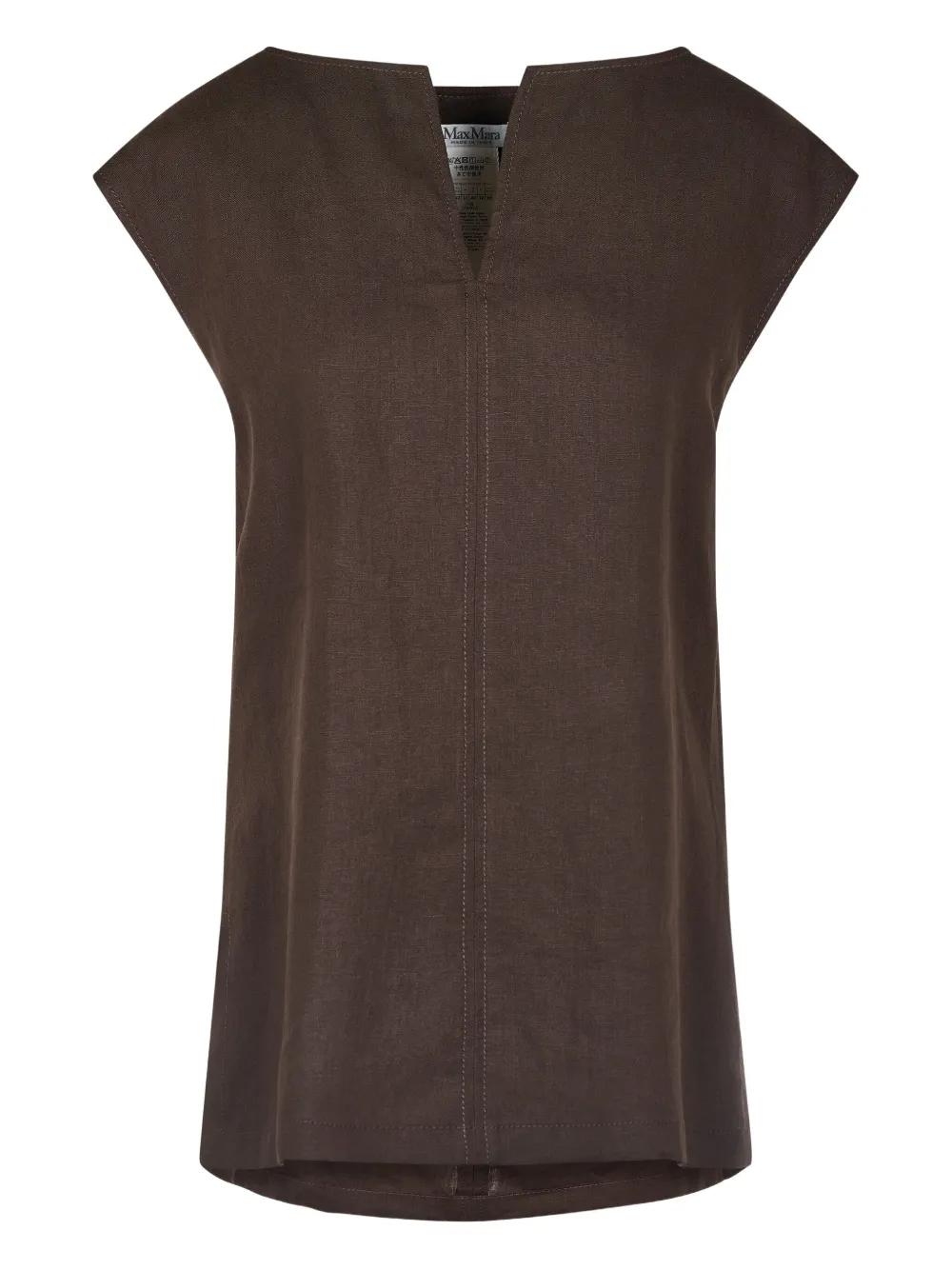 Max Mara cap-sleeve linen top - Brown