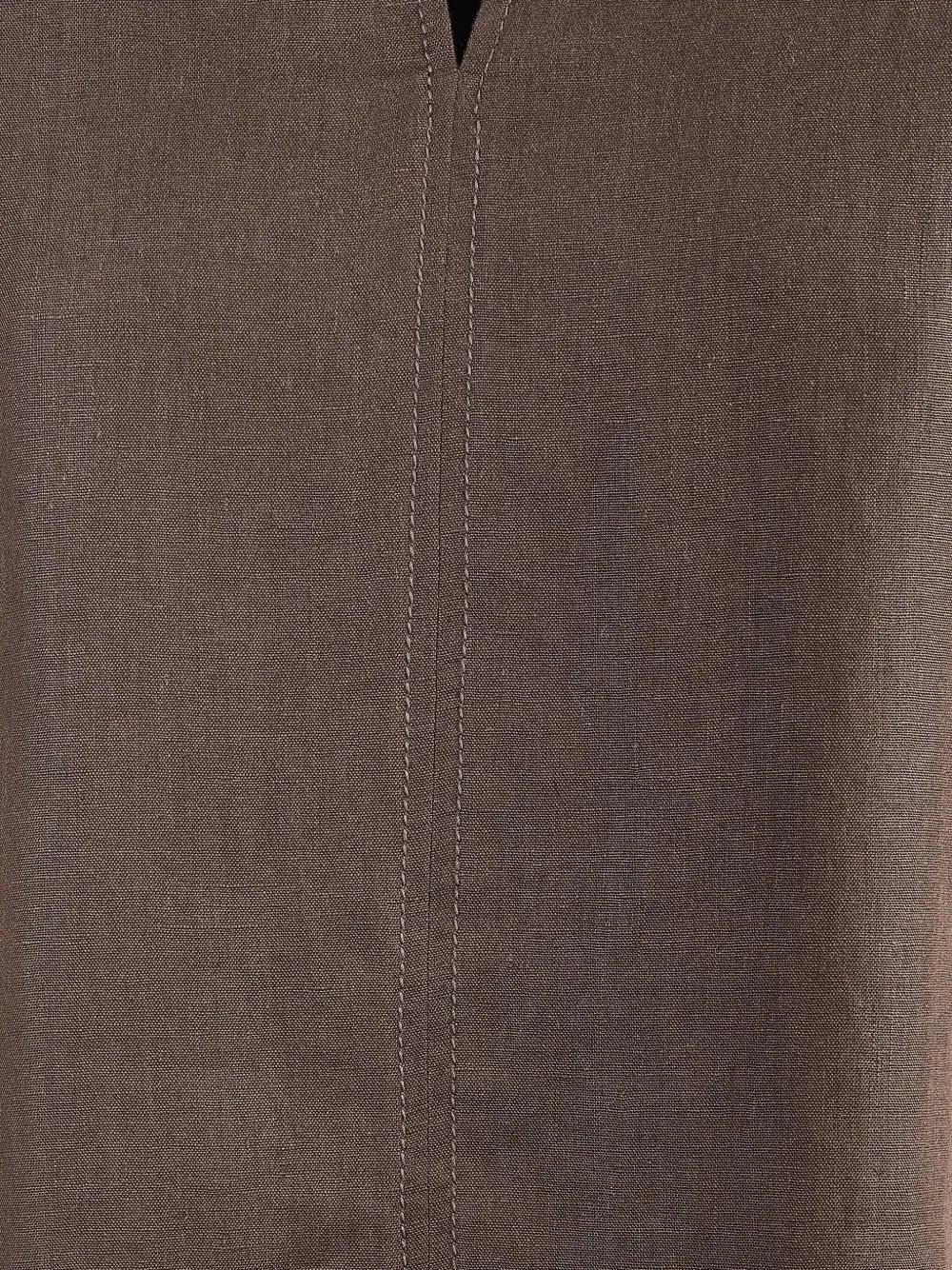dark brown v-neckline cap sleeves central seam detail straight hem