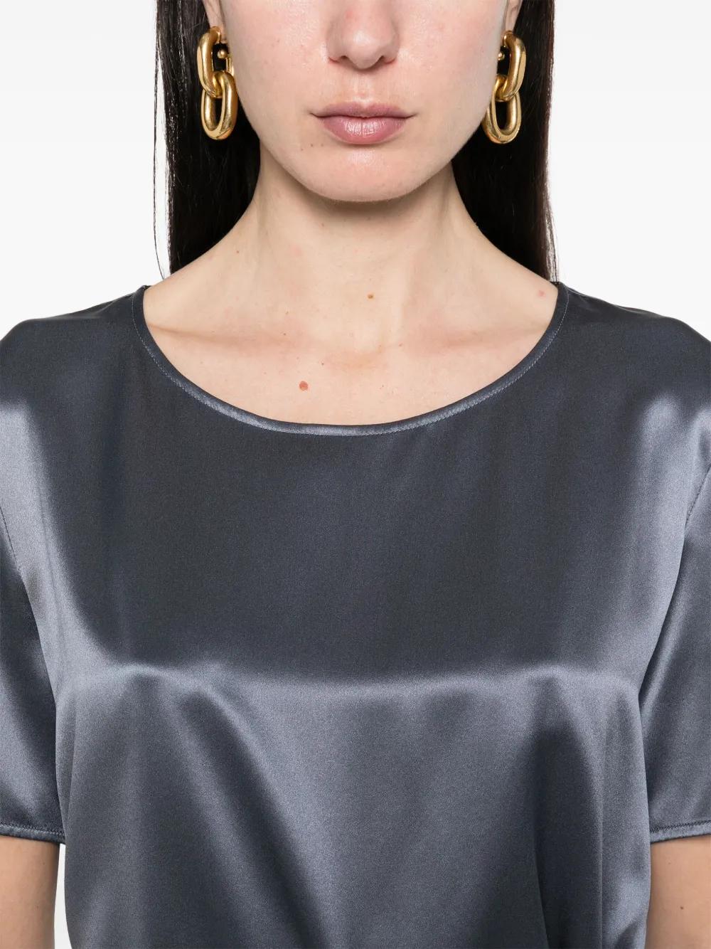steel blue crew neck short sleeves side slits