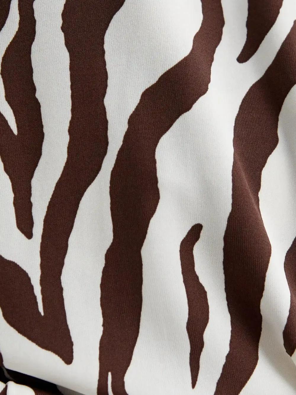 brown zebra pattern tie detail short sleeves V-neck adjustable tie fastening